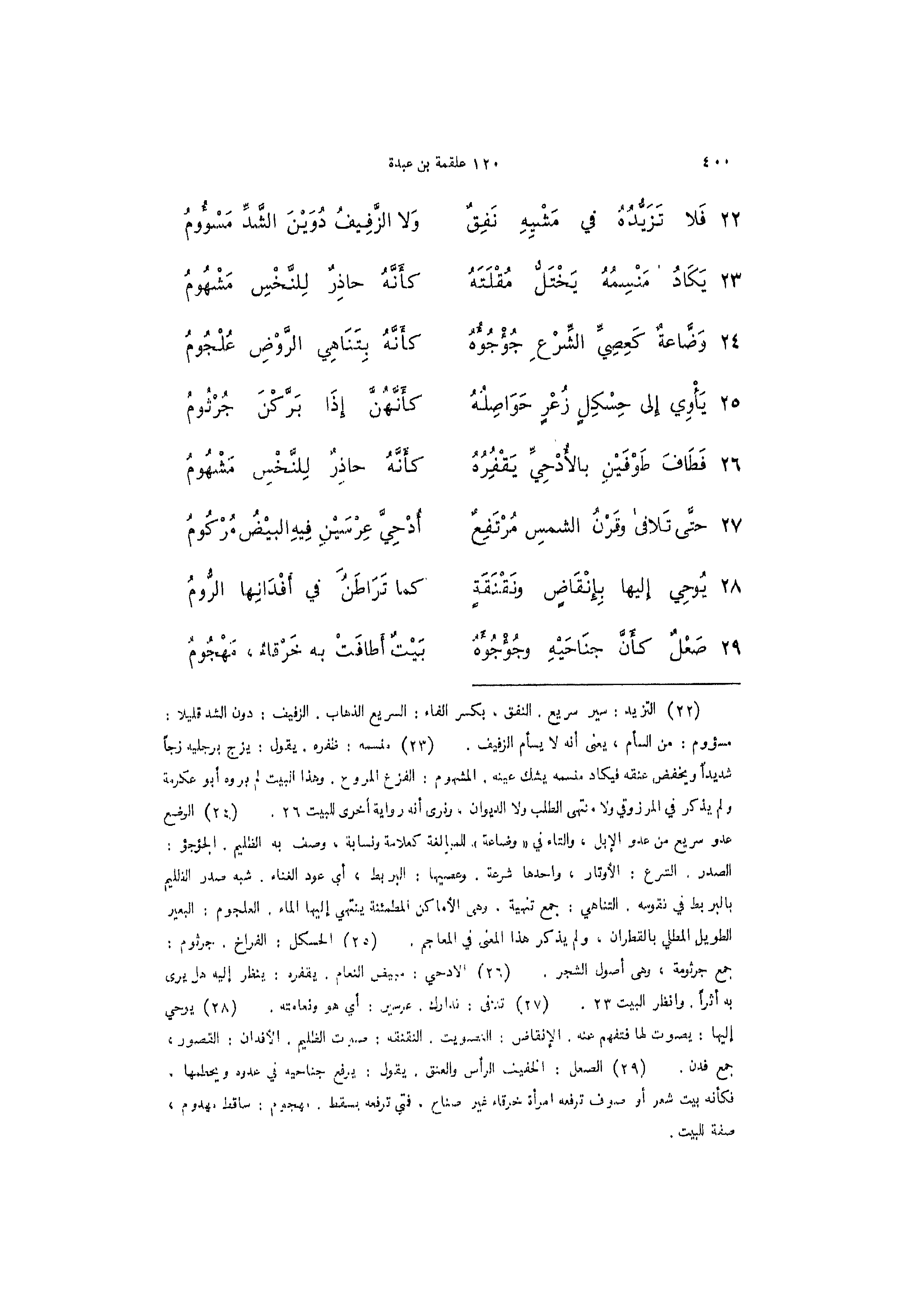 22 - (فَلا تَزَيُّدُهُ في مَشْيِهِ نَفِقٌ ... وَلا الزَّفِيفُ دُوَيْنَ الشَّدِّ مَسْؤُومُ)
