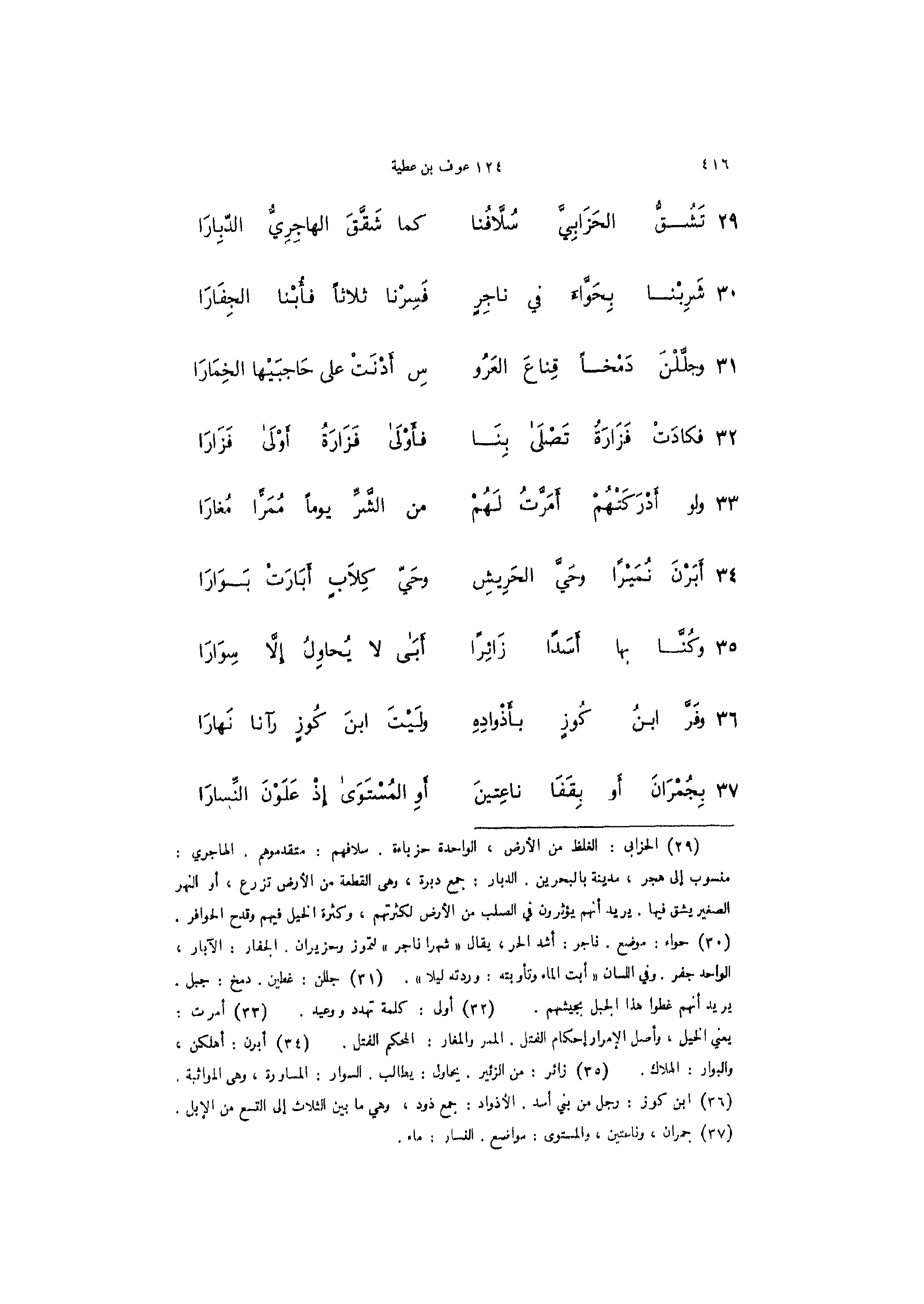 30 - (شَرِبْنا بِحَوَّاءَ في ناجِرٍ ... فَسِرْنا ثلاثاً فأُبْنا الجِفَارَا)