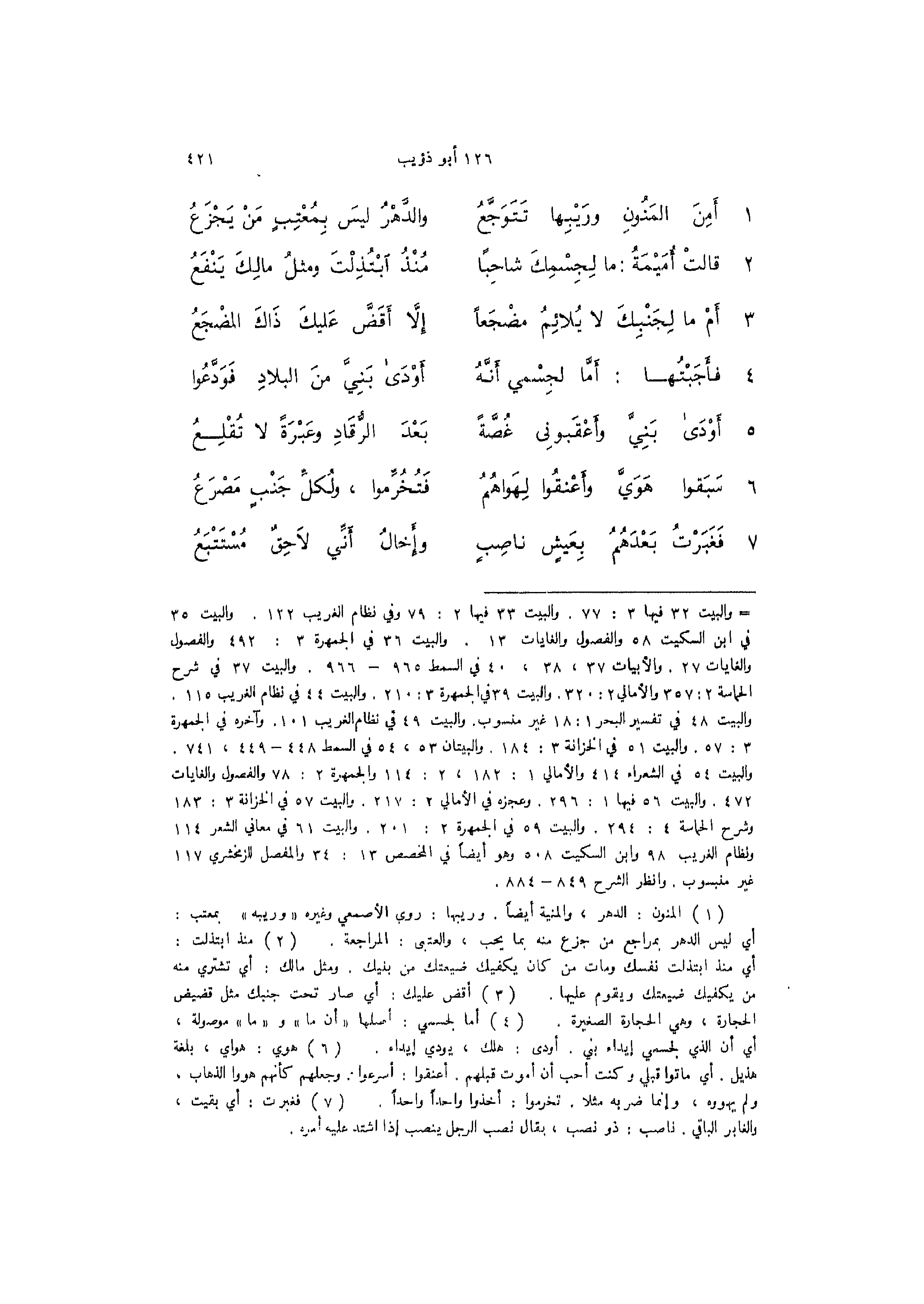 7 - (فَغَبَرْتُ بَعْدَهُمُ بِعَيش ٍناصِبٍ ... وأَخالُ أَنِّي لاَحِقٌ مُسْتَتْبَعُ)