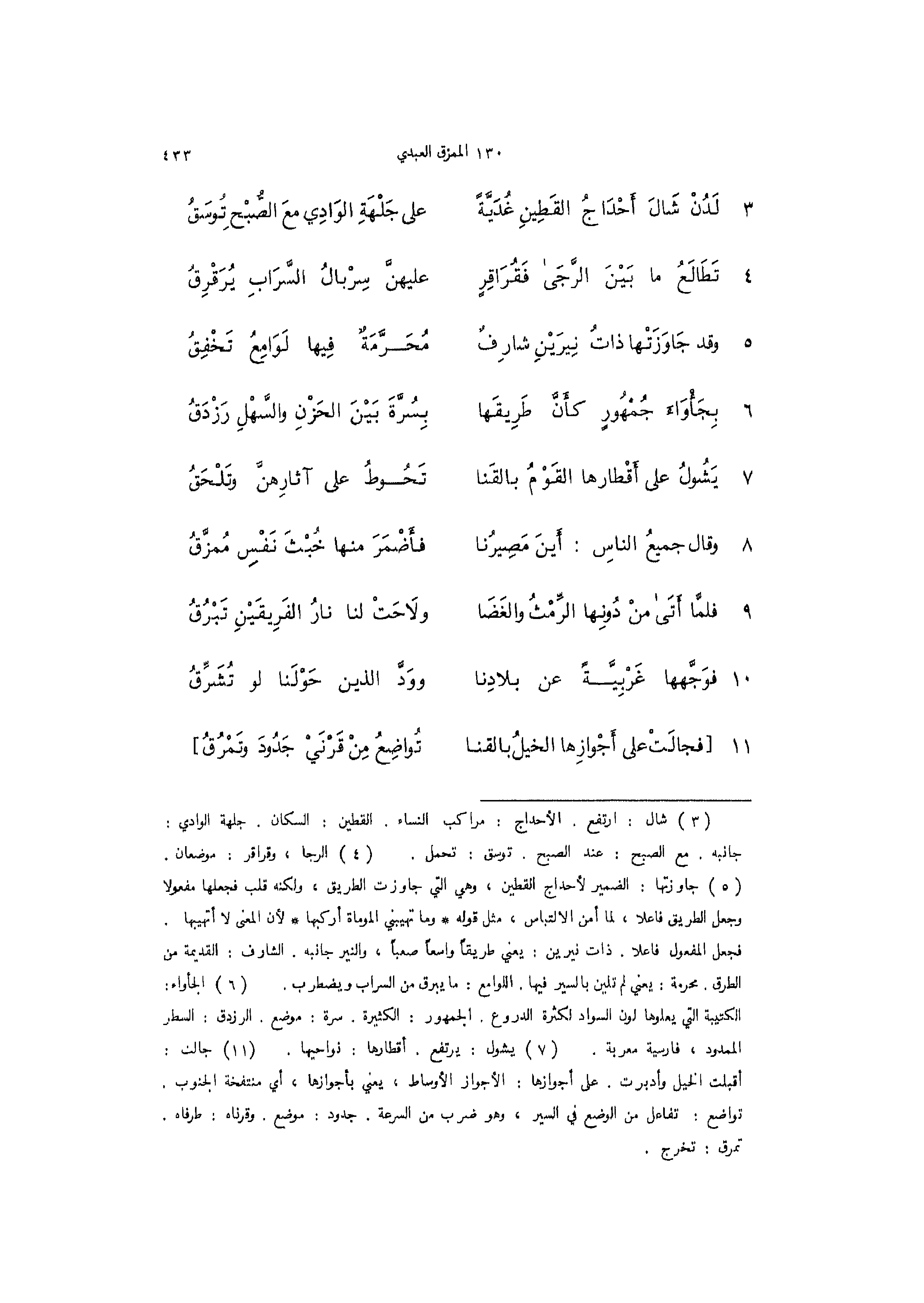 3 - (لَدُنْ شَالَ أَحْدَاجُ القطين غدية ... على جَلْهَةِ الوَادِي معَ الصُّبْحِ تُوسَقُ)
