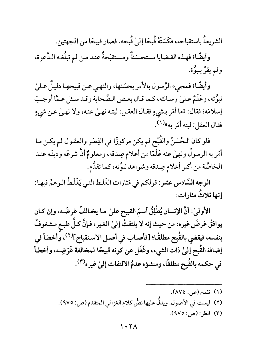 (¬٢) ليست في الأصول. ويدلُّ عليها نصُّ كلام الغزالي المتقدم (ص: ٩٧٥).