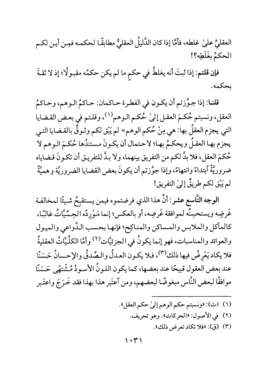 (¬١) (ت): «ونسبتم حكم الوهم إلى حكم العقل».
