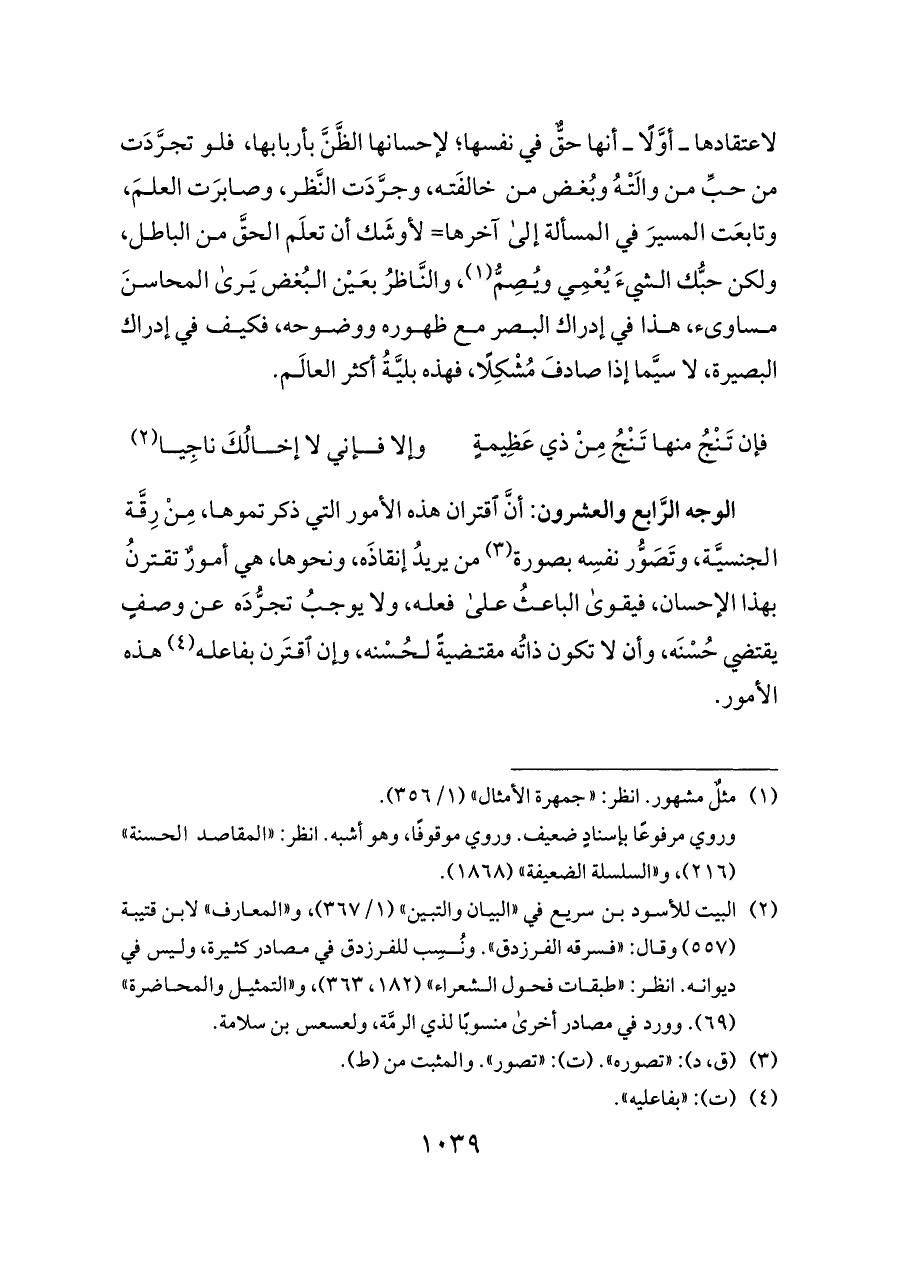 لاعتقادها ــ أوَّلًا ــ أنها حقٌّ في نفسها؛ لإحسانها الظَّنَّ بأربابها، فلو تجرَّدَت من حبِّ من والَتْهُ وبُغض من خالفَته، وجرَّدَت النَّظر، وصابرَت العلمَ، وتابعَت المسيرَ في المسألة إلى آخرها= لأوشَك أن تعلَم الحقَّ من الباطل، ولكن حبُّك الشيءَ يُعْمِي ويُصِمُّ (¬١)،