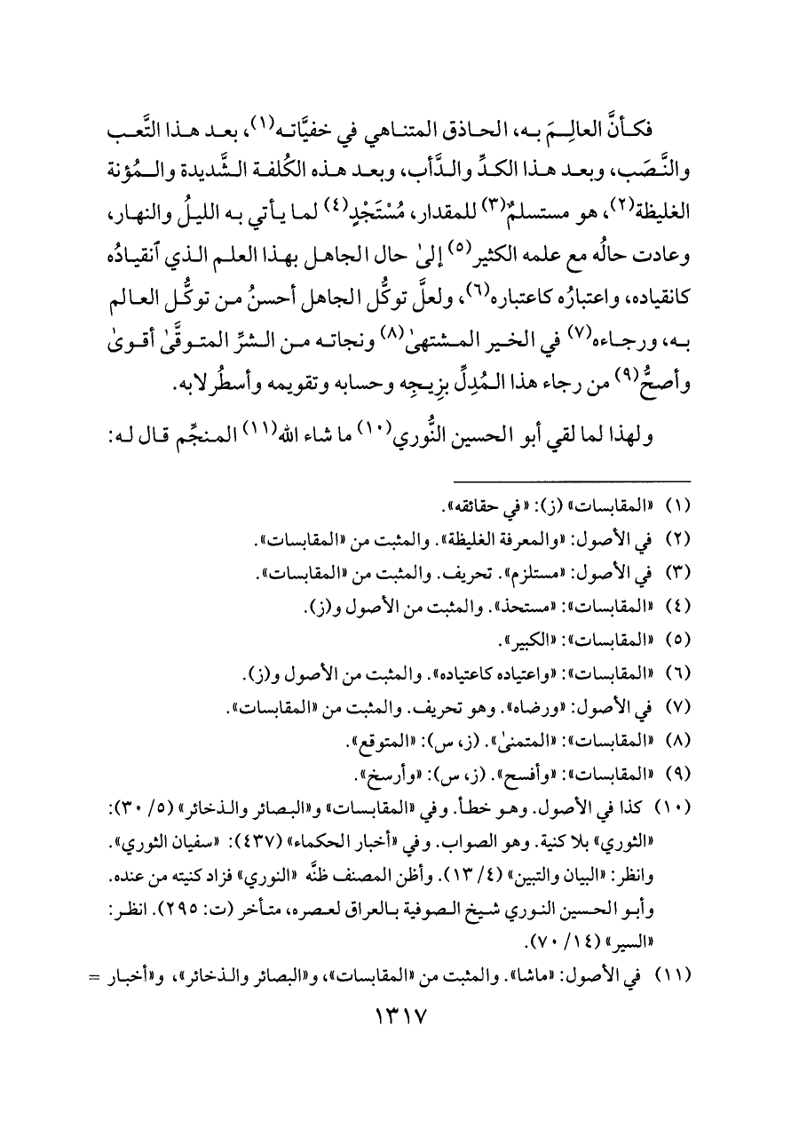 (¬٨) «المقابسات»: «المتمنى». (ز، س): «المتوقع».