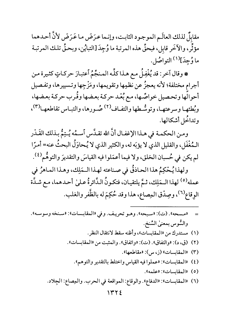 (¬٤) «المقابسات»: «عملوا فيه القياس واختلط بالتقدير والتوهم».
