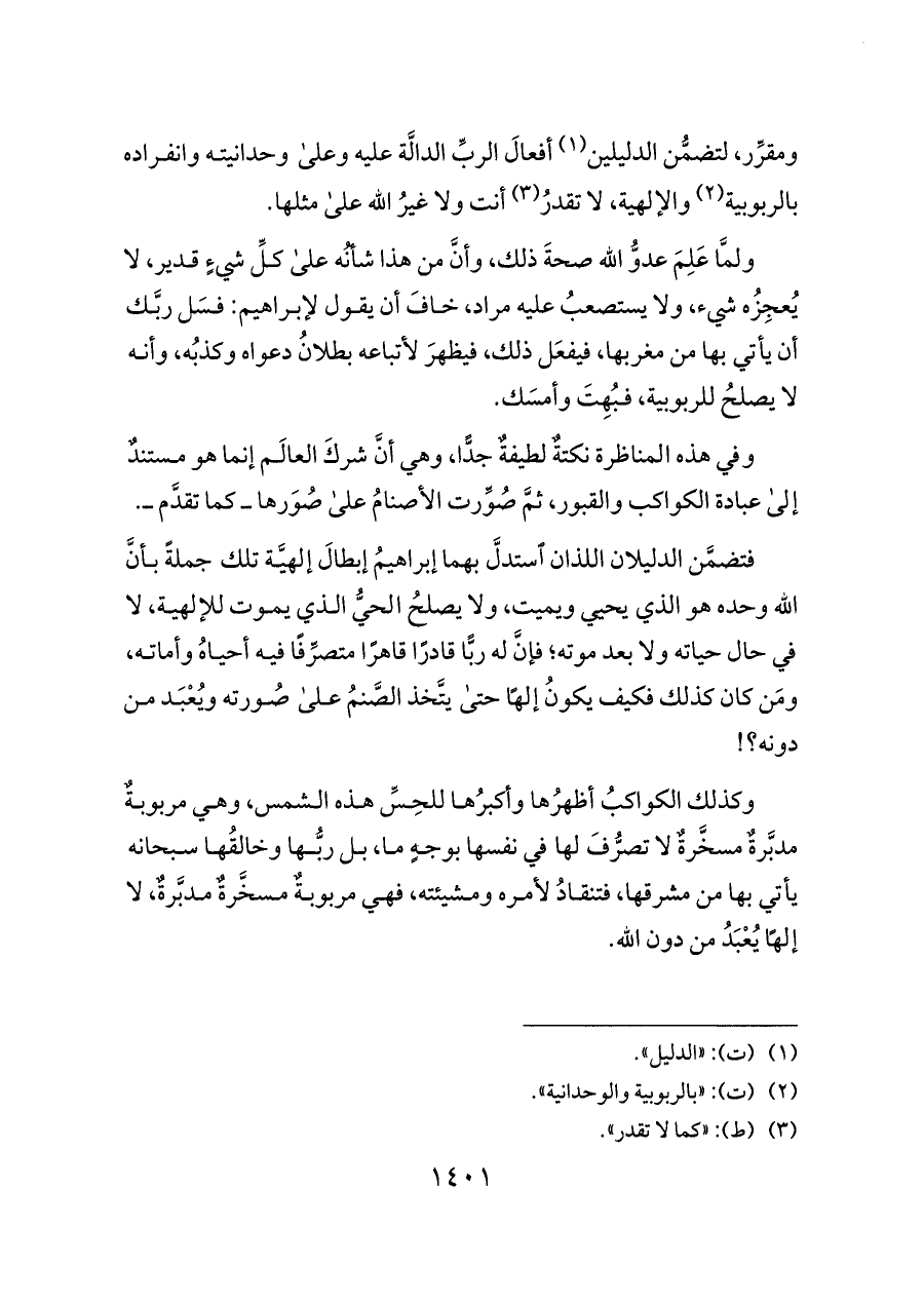 ومقرِّر، لتضمُّن الدليلين (¬١) أفعالَ الربِّ الدالَّة عليه وعلى وحدانيته وانفراده بالربوبية (¬٢) والإلهية، لا تقدرُ (¬٣) أنت ولا غيرُ الله على مثلها.