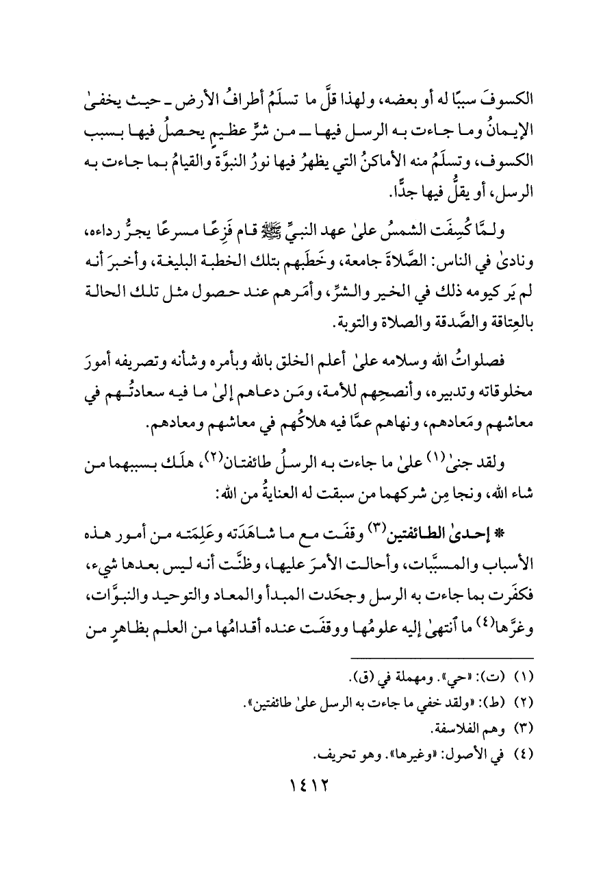 (¬٢) (ط): «ولقد خفي ما جاءت به الرسل على طائفتين».