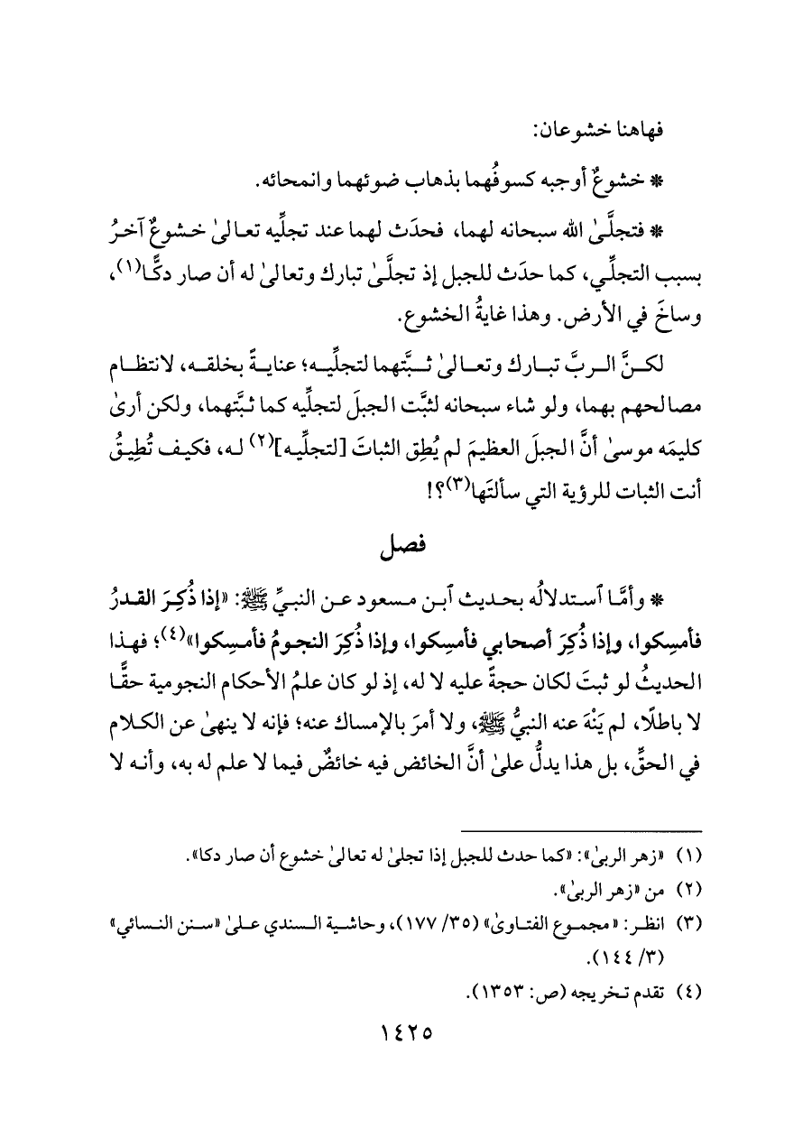 (¬١) «زهر الربى»: «كما حدث للجبل إذا تجلى له تعالى خشوع أن صار دكا».