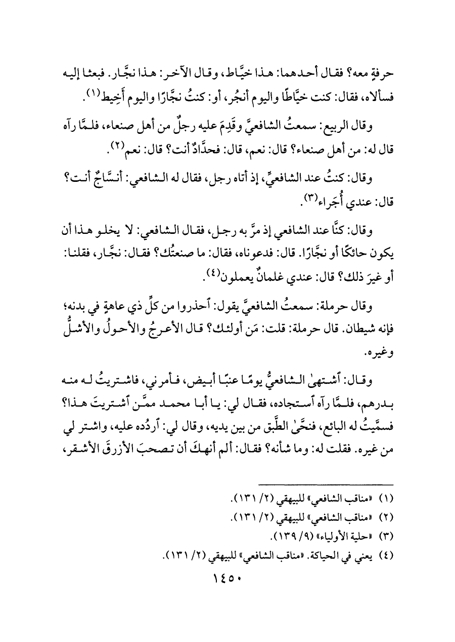 (¬٤) يعني في الحياكة. «مناقب الشافعي» للبيهقي (٢/ ١٣١).