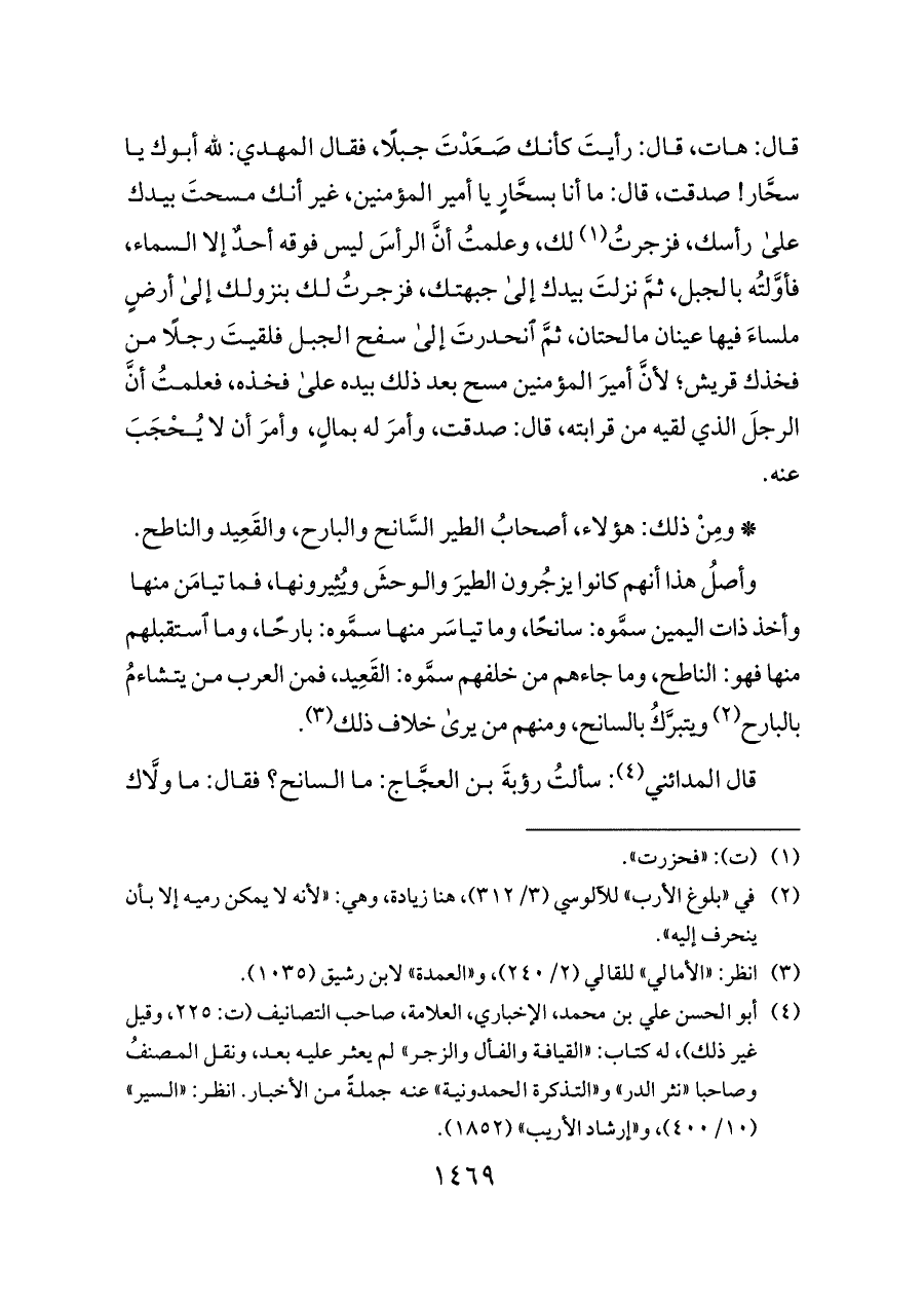 قال المدائني (¬٤): سألتُ رؤبةَ بن العجَّاج: ما السانح؟ فقال: ما ولَّاك