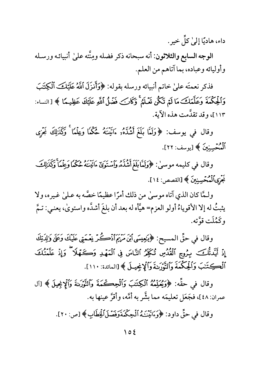 الوجه السابع والثلاثون: أنه سبحانه ذكر فضله ومِنَّته على أنبيائه ورسله وأوليائه وعباده، بما آتاهم من العلم.