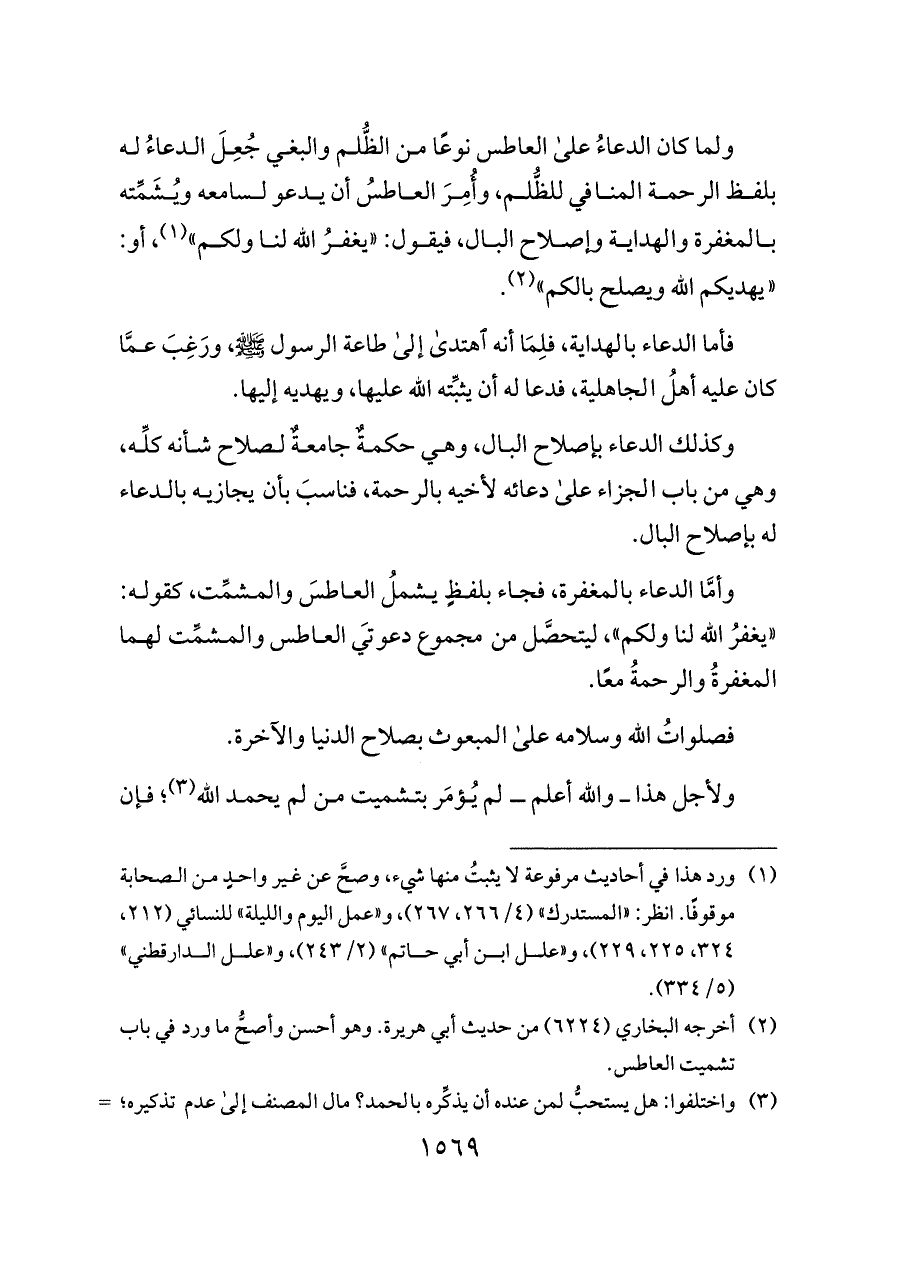 (¬٢) أخرجه البخاري (٦٢٢٤) من حديث أبي هريرة. وهو أحسن وأصحُّ ما ورد في باب تشميت العاطس.