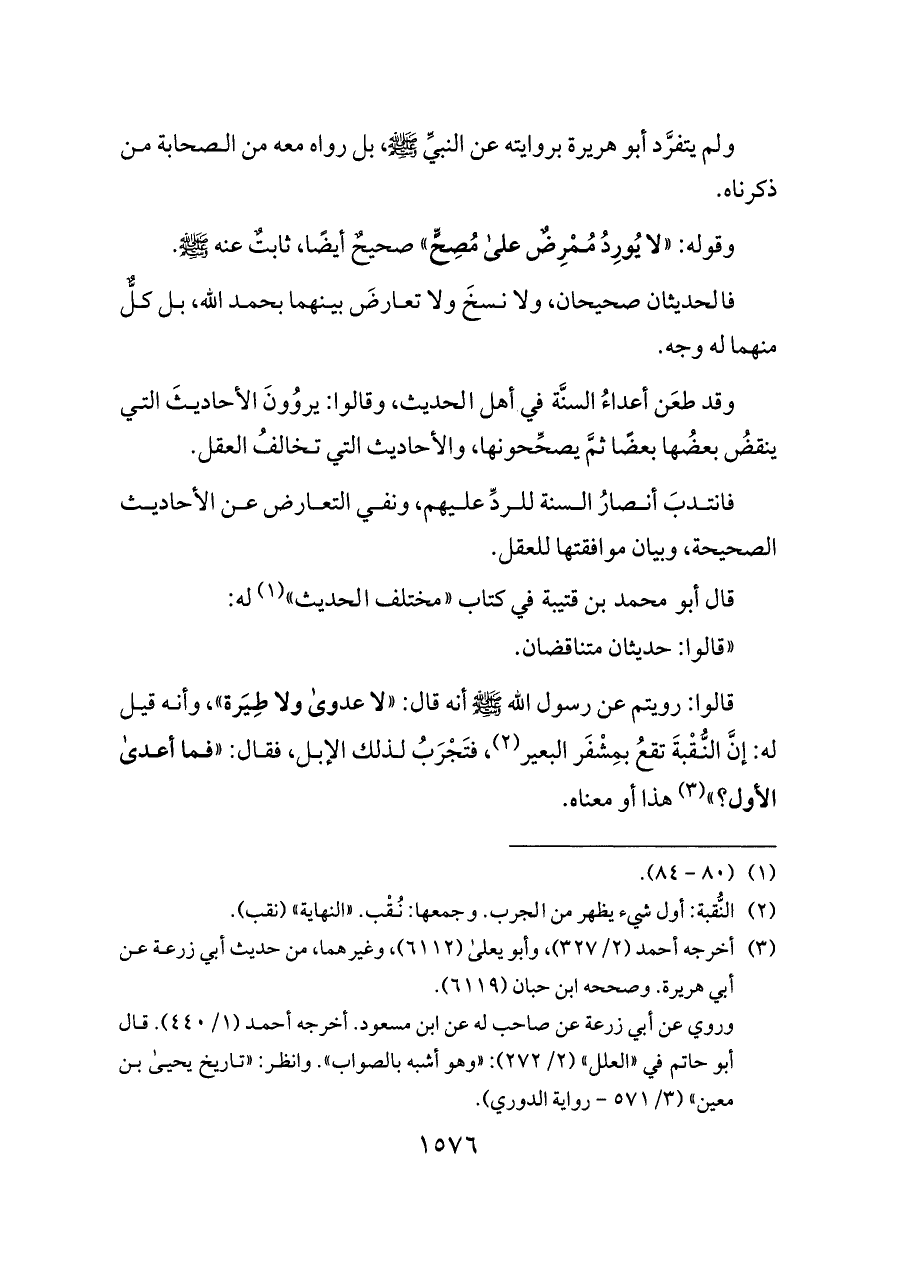 وقد طعَن أعداءُ السنَّة في أهل الحديث، وقالوا: يروُونَ الأحاديثَ التي ينقضُ بعضُها بعضًا ثمَّ يصحِّحونها، والأحاديث التي تخالفُ العقل.
