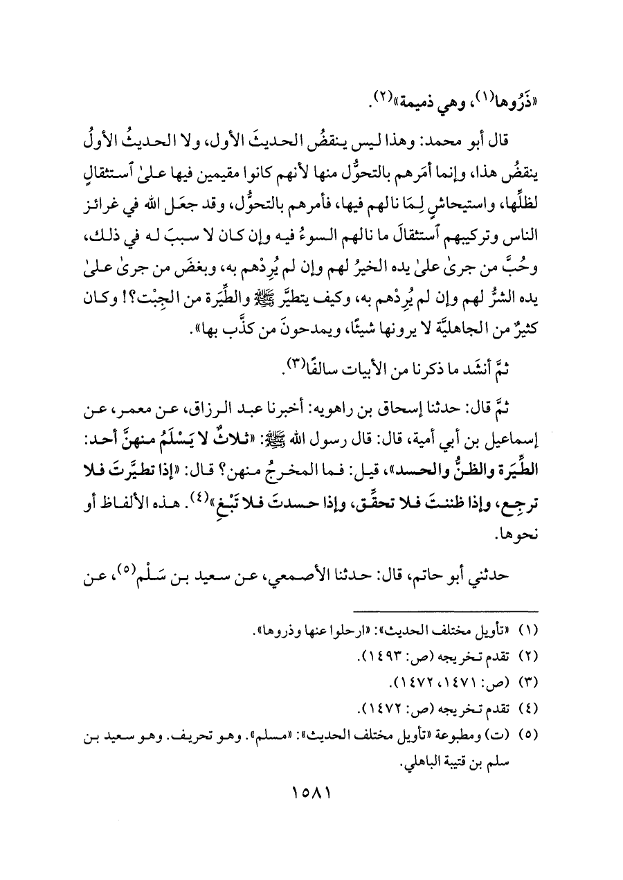 (¬٥) (ت) ومطبوعة «تأويل مختلف الحديث»: «مسلم». وهو تحريف. وهو سعيد بن سلم بن قتيبة الباهلي.