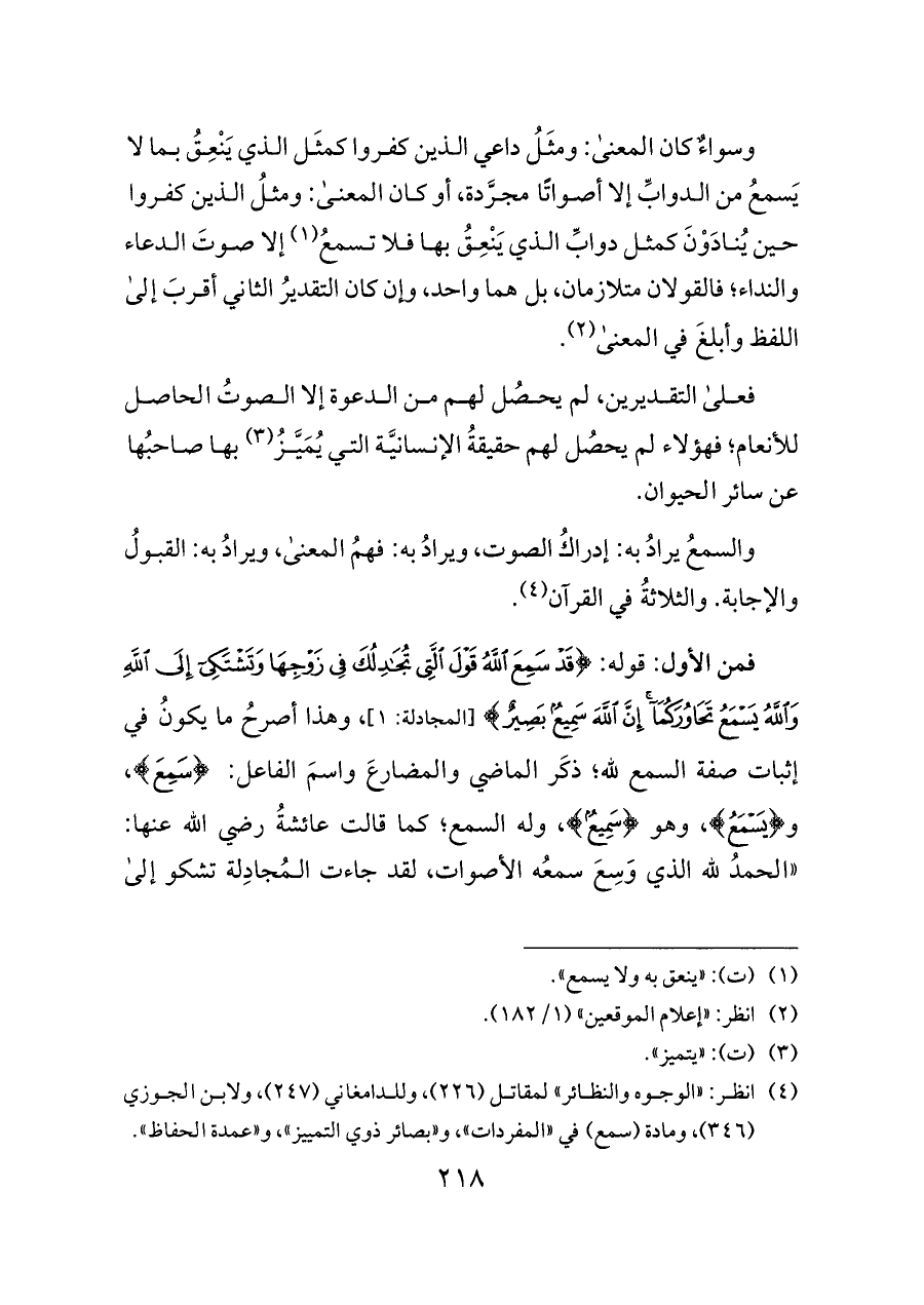 (¬٤) انظر: «الوجوه والنظائر» لمقاتل (٢٢٦)، وللدامغاني (٢٤٧)، ولابن الجوزي (٣٤٦)، ومادة (سمع) في «المفردات»، و «بصائر ذوي التمييز»، و «عمدة الحفاظ».