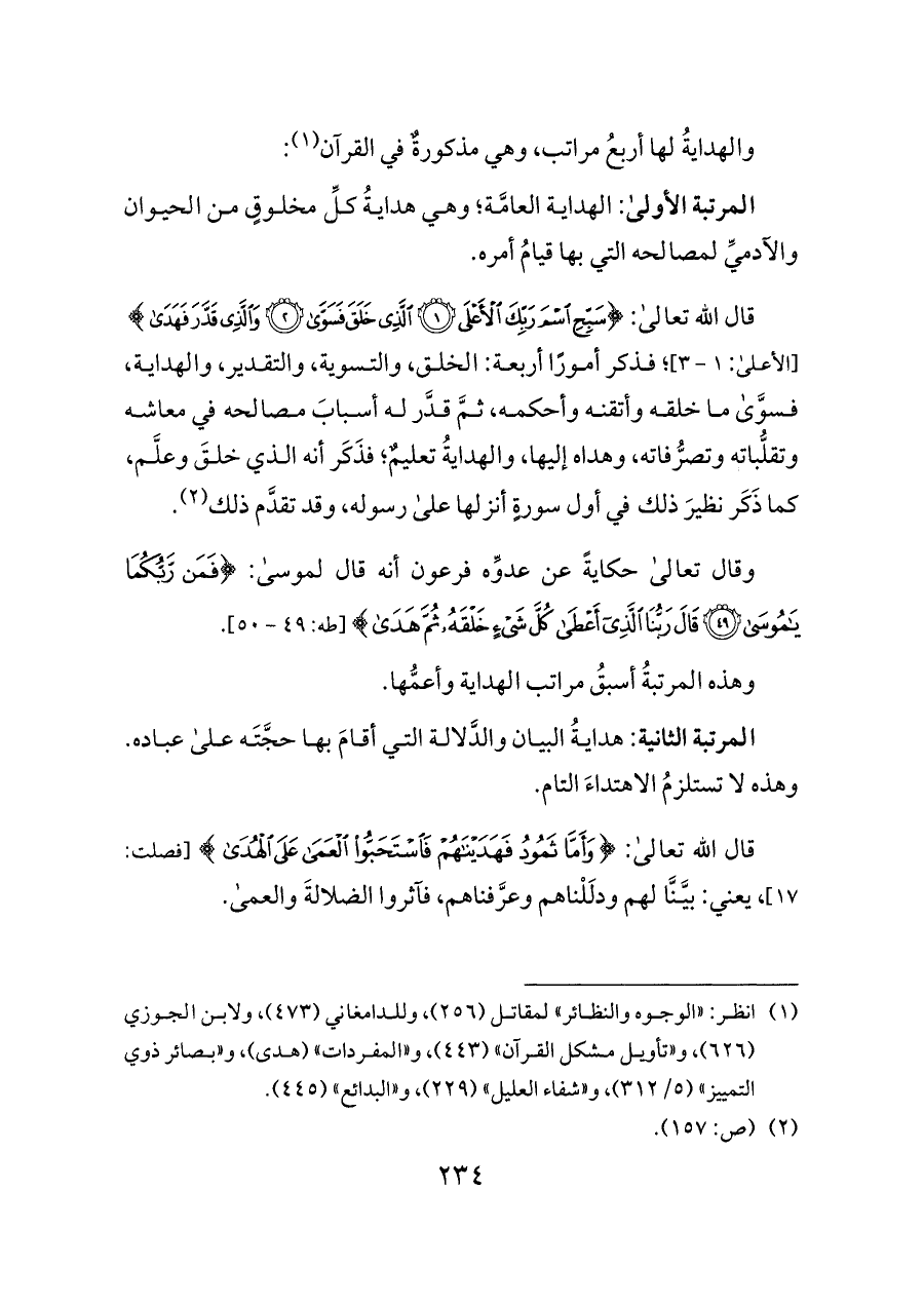 (¬١) انظر: «الوجوه والنظائر» لمقاتل (٢٥٦)، وللدامغاني (٤٧٣)، ولابن الجوزي (٦٢٦)، و «تأويل مشكل القرآن» (٤٤٣)، و «المفردات» (هدى)، و «بصائر ذوي التمييز» (٥/ ٣١٢)، و «شفاء العليل» (٢٢٩)، و «البدائع» (٤٤٥).