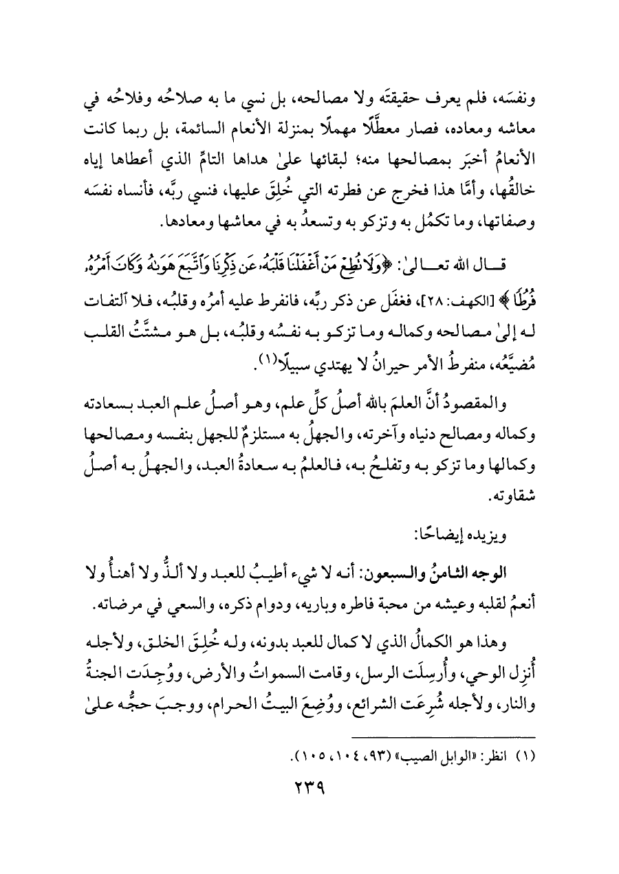 (¬١) انظر: «الوابل الصيب» (٩٣، ١٠٤، ١٠٥).