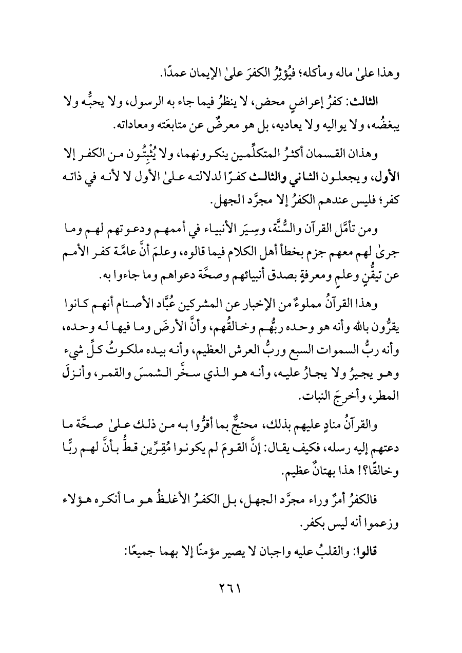 فالكفرُ أمرٌ وراء مجرَّد الجهل، بل الكفرُ الأغلظُ هو ما أنكره هؤلاء وزعموا أنه ليس بكفر.