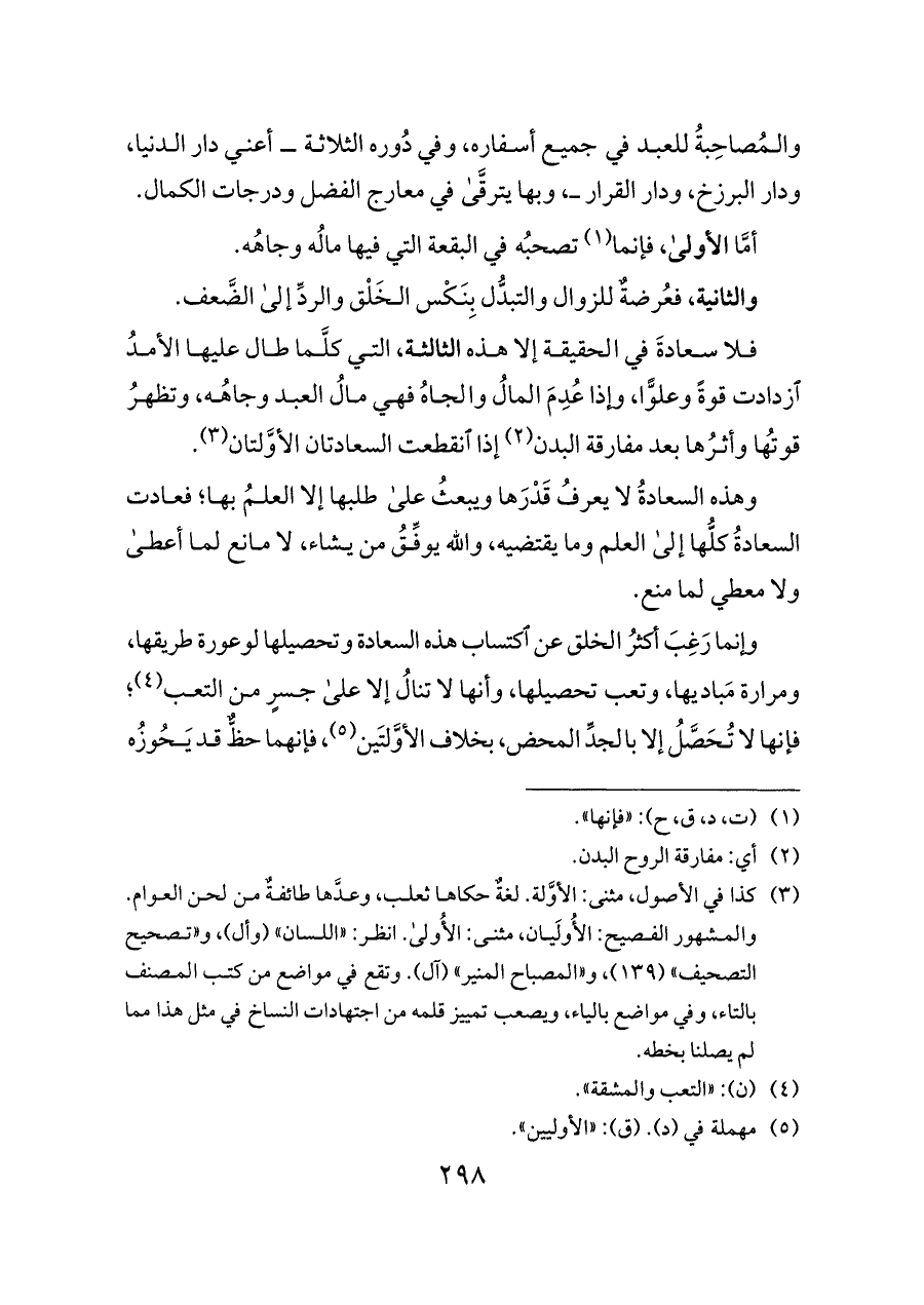والمُصاحِبةُ للعبد في جميع أسفاره، وفي دُوره الثلاثة ــ أعني دار الدنيا، ودار البرزخ، ودار القرار ــ، وبها يترقَّى في معارج الفضل ودرجات الكمال.