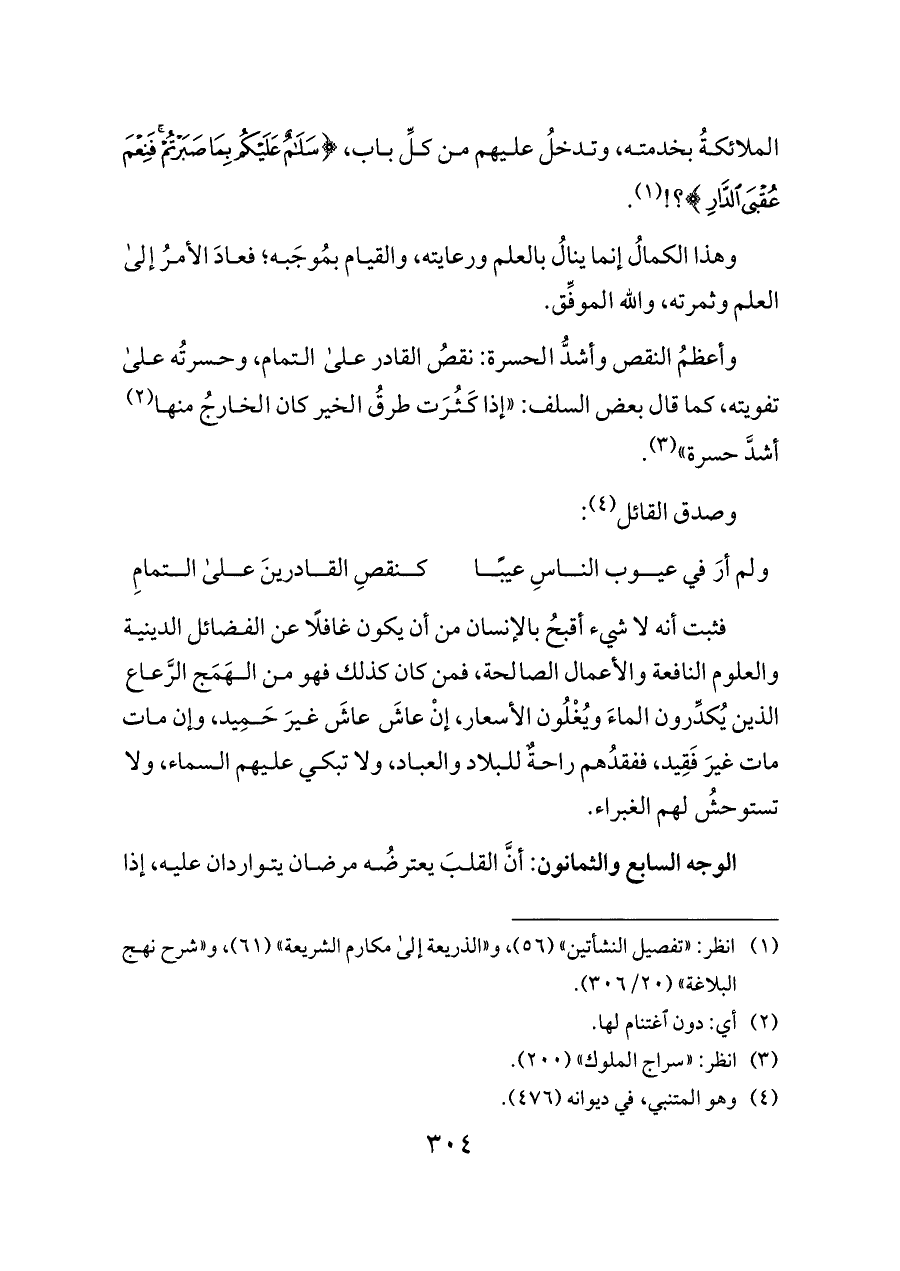 وهذا الكمالُ إنما ينالُ بالعلم ورعايته، والقيام بمُوجَبه؛ فعادَ الأمرُ إلى العلم وثمرته، والله الموفِّق.