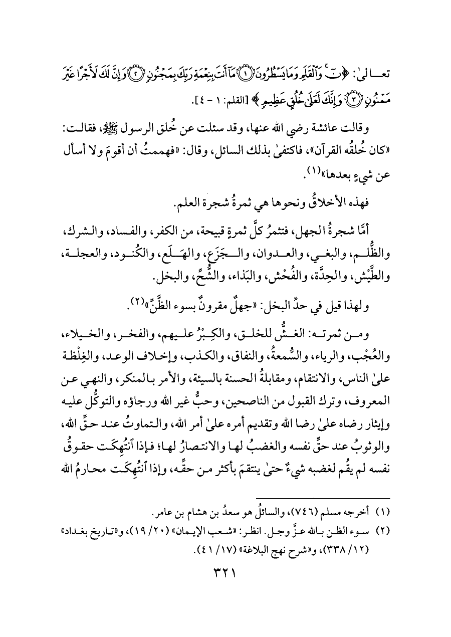 فهذه الأخلاقُ ونحوها هي ثمرةُ شجرة العلم.