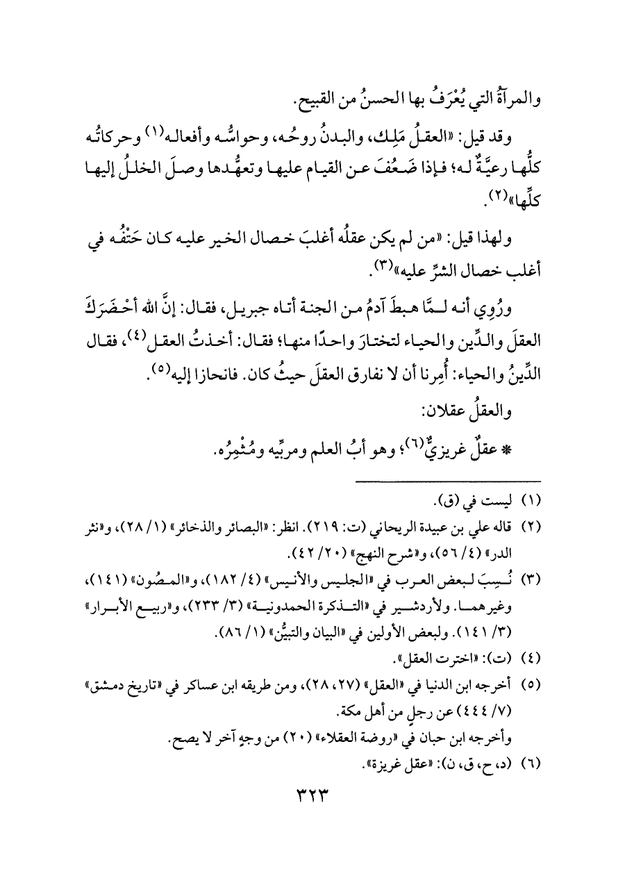 (¬٦) (د، ح، ق، ن): «عقل غريزة».