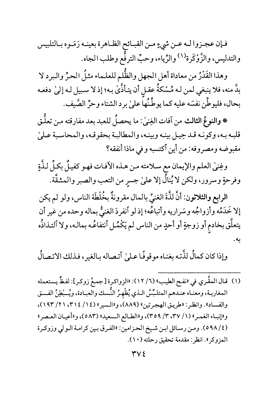(¬١) قال المقَّري في «نفح الطيب» (٦/ ١٢): «الزواكرة [جمعُ زوكر]: لفظٌ يستعمله المغاربة، ومعناه عندهم المتلبِّسُ الذي يُظْهِرُ النُّسك والعبادة، ويُبْطِنُ الفسق والفساد». وانظر: «طريق الهجرتين» (٨٨٩)، و «السير» (١٤/ ٣١٤، ٢١/ ١٩٣)، و «إنباء الغمر» (١/ ٣٧، ٣/ ٣٥٩)، و «الطالع السعيد» (٥٨٣)، و «أعيان العصر» (٤/ ٥٩٨). ومن رسائل ابن شيخ الحزامين: «الفرق بين كرامة الولي وزوكرة المزوكر». انظر: مقدمة تحقيق رحلته (١٠).