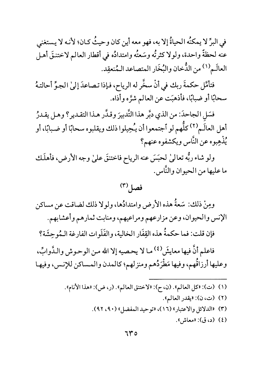 (¬٣) «الدلائل والاعتبار» (١٦)، «توحيد المفضل» (٩٠، ٩٢).