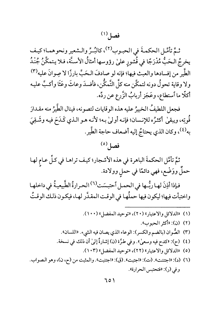 (¬١) «الدلائل والاعتبار» (٢٠)، «توحيد المفضل» (١٠٠).