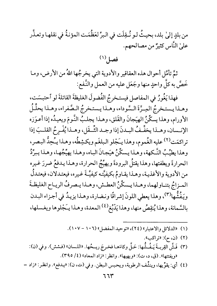 (¬١) «الدلائل والاعتبار» (٢٤)، «توحيد المفضل» (١٠٦ - ١٠٧).