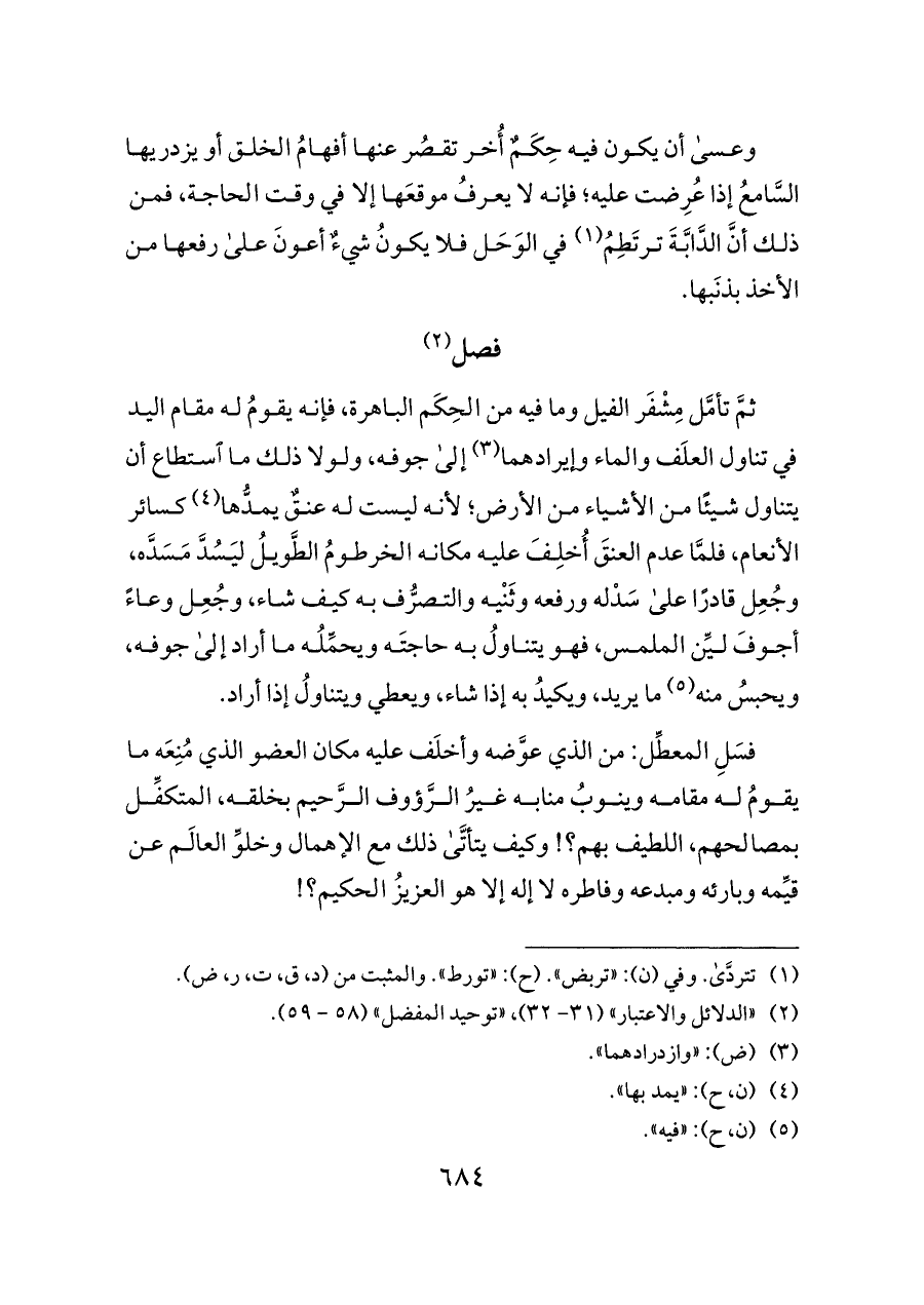 (¬٢) «الدلائل والاعتبار» (٣١ - ٣٢)، «توحيد المفضل» (٥٨ - ٥٩).
