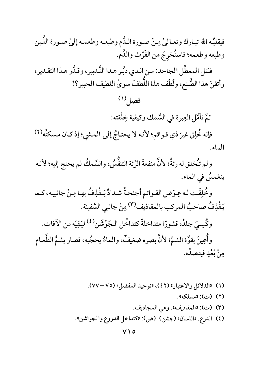 (¬١) «الدلائل والاعتبار» (٤٢)، «توحيد المفضل» (٧٥ - ٧٧).