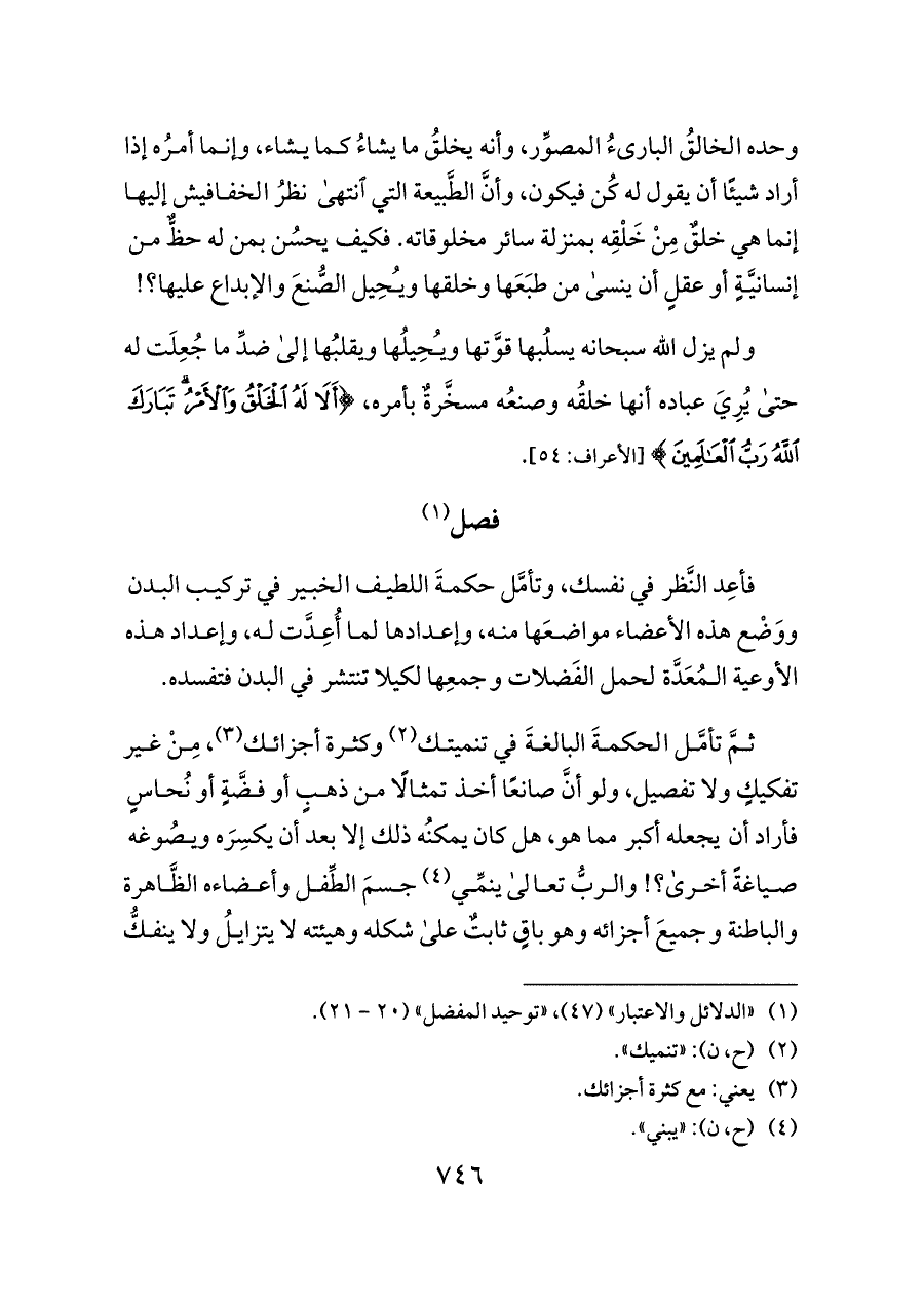 (¬١) «الدلائل والاعتبار» (٤٧)، «توحيد المفضل» (٢٠ - ٢١).