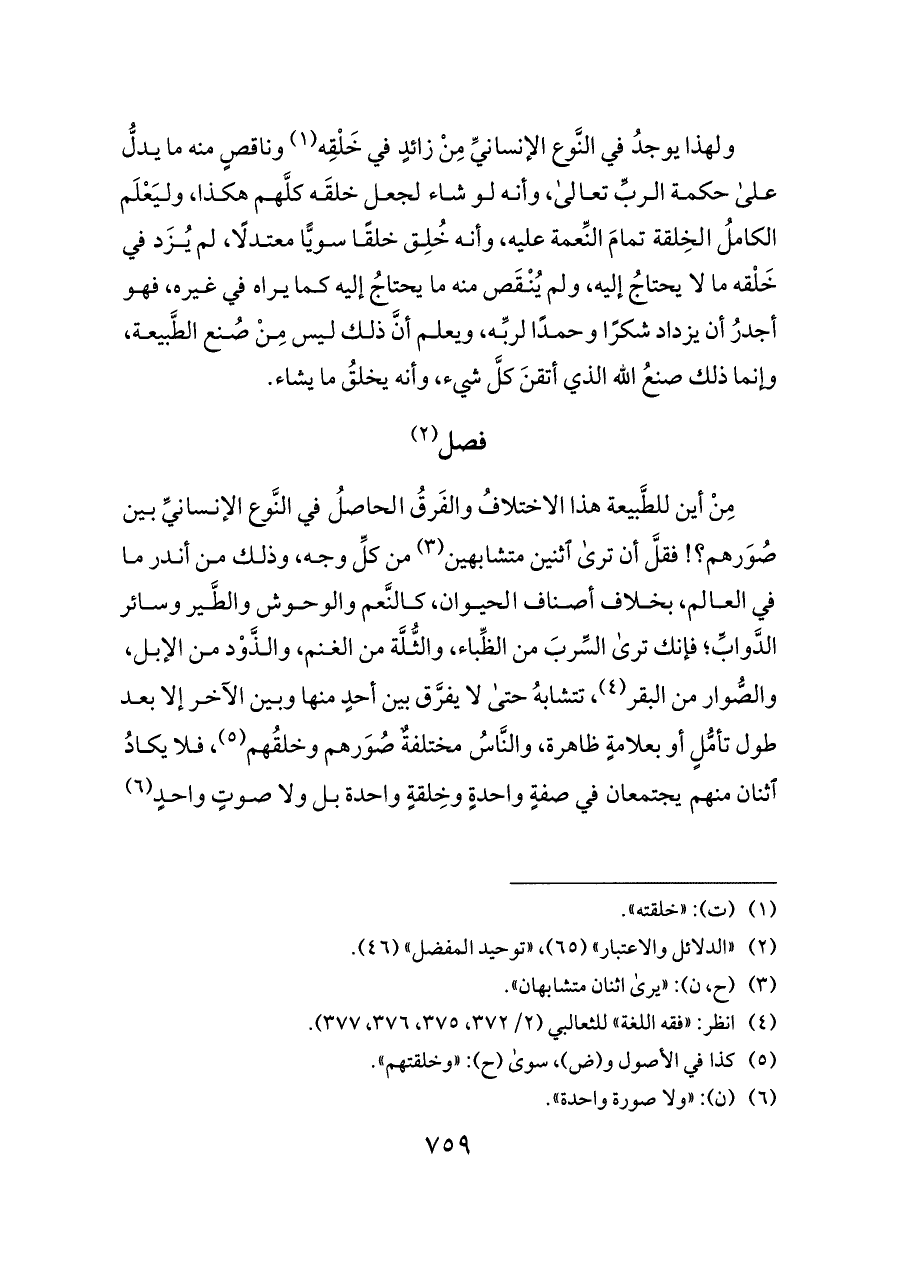 (¬٢) «الدلائل والاعتبار» (٦٥)، «توحيد المفضل» (٤٦).