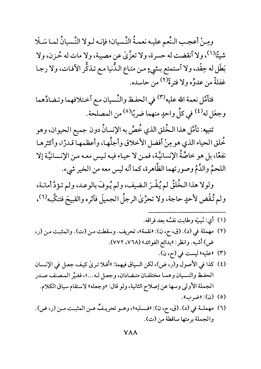 فتأمَّل نعمة الله عليه (¬٣) في الحفظ والنِّسيان مع اختلافهما وتضادِّهما وجعَل له (¬٤) في كلِّ واحدٍ منهما ضربًا (¬٥) من المصلحة.