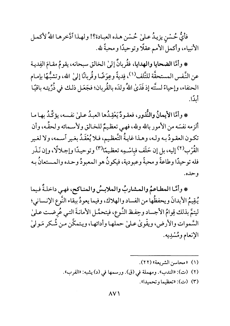 (¬١) «محاسن الشريعة» (٢٢).