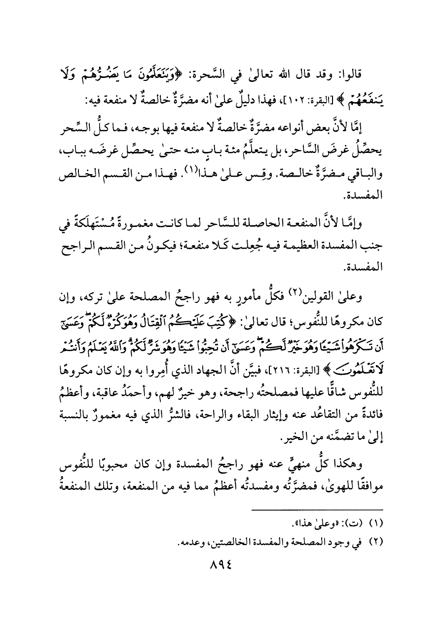 قالوا: وقد قال الله تعالى في السَّحرة: {وَيَتَعَلَّمُونَ مَا يَضُرُّهُمْ وَلَا يَنْفَعُهُمْ} [البقرة: ١٠٢]، فهذا دليلٌ على أنه مضرَّةٌ خالصةٌ لا منفعة فيه: