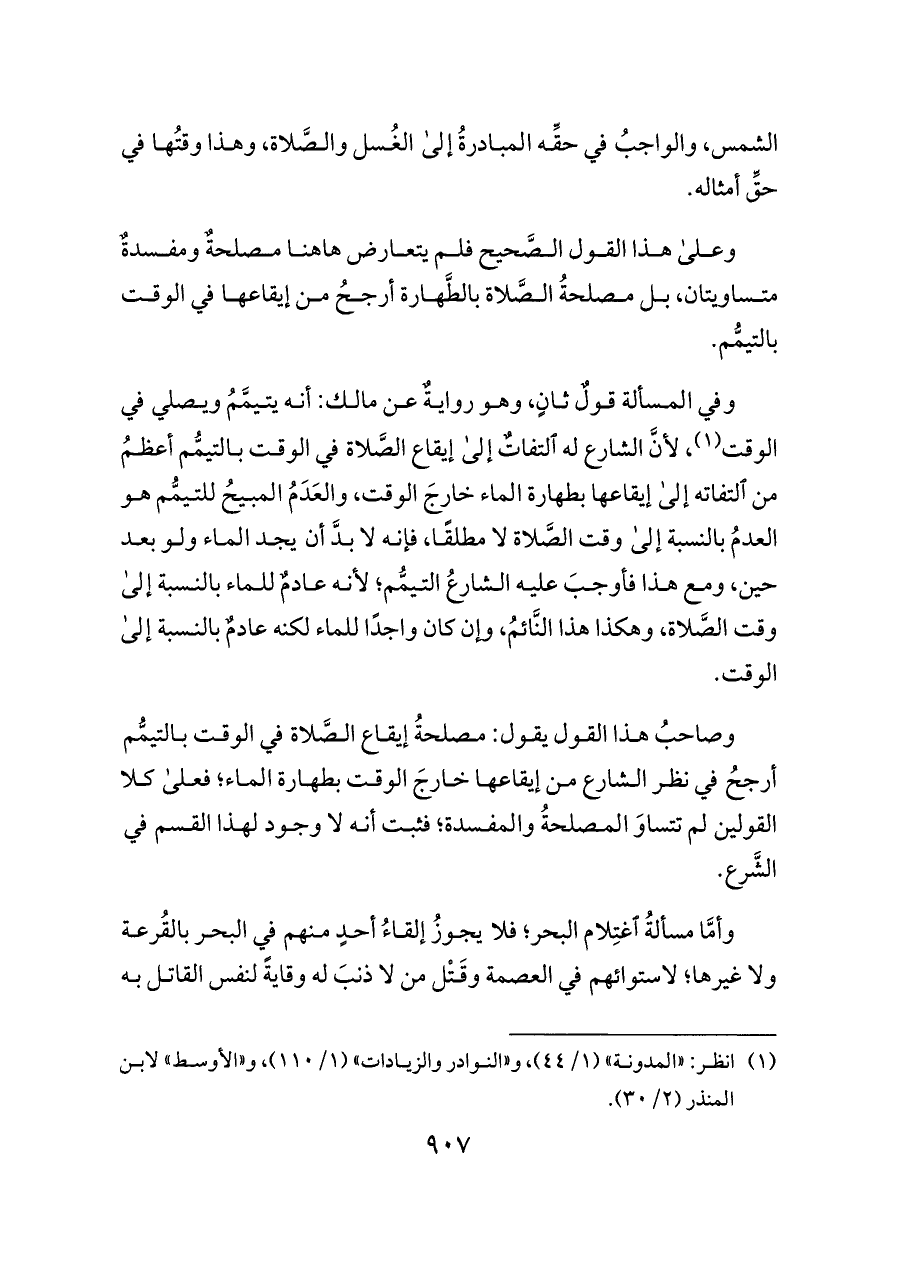 (¬١) انظر: «المدونة» (١/ ٤٤)، و «النوادر والزيادات» (١/ ١١٠)، و «الأوسط» لابن المنذر (٢/ ٣٠).