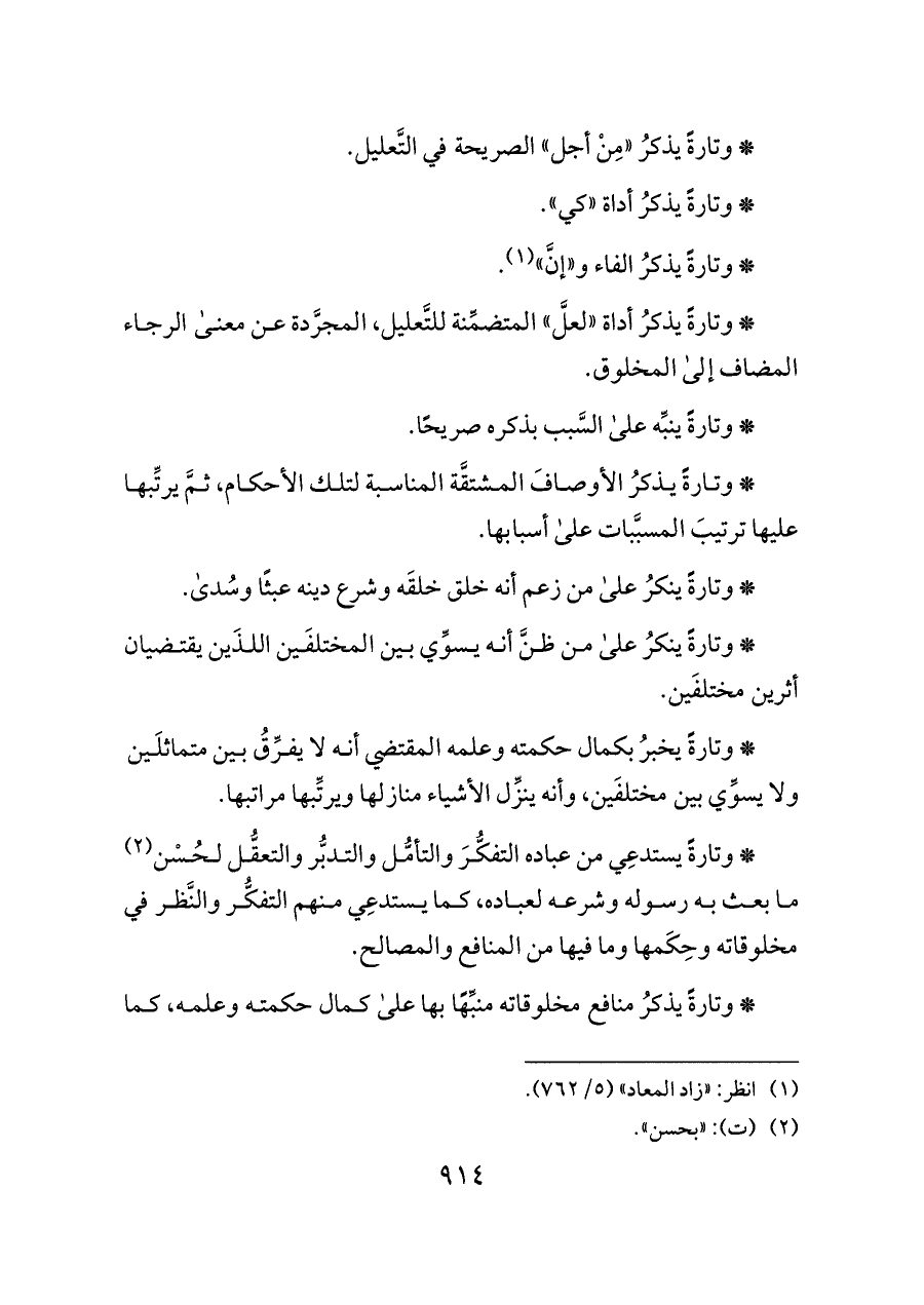 * وتارةً يستدعِي من عباده التفكُّرَ والتأمُّل والتدبُّر والتعقُّل لحُسْن (¬٢) ما بعث به رسوله وشرعه لعباده، كما يستدعِي منهم التفكُّر والنَّظر في مخلوقاته وحِكَمها وما فيها من المنافع والمصالح.