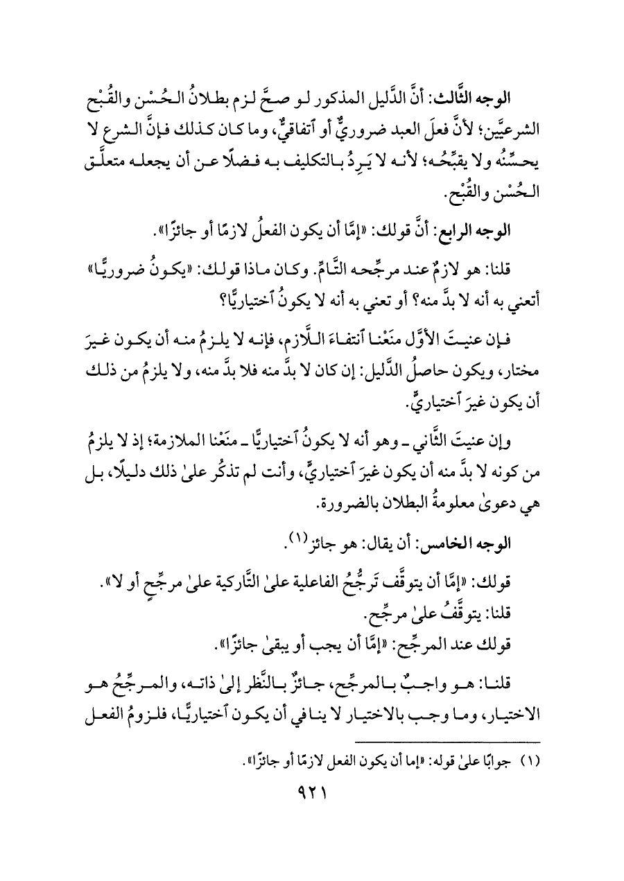 الوجه الرابع: أنَّ قولك: «إمَّا أن يكون الفعلُ لازمًا أو جائزًا».