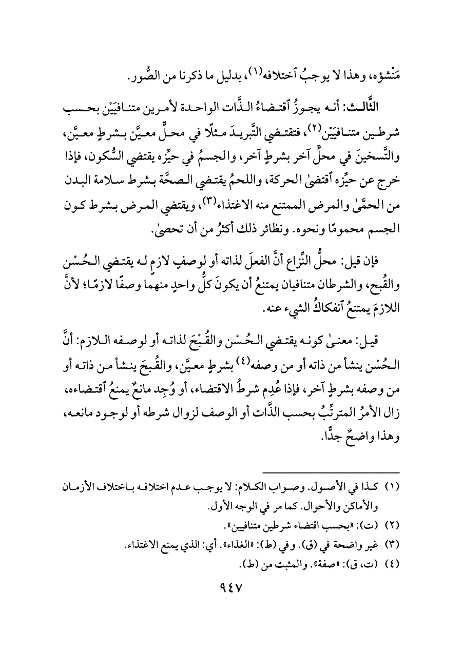 (¬٢) (ت): «بحسب اقتضاء شرطين متنافيين».