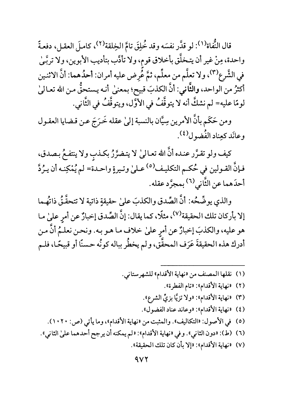 (¬١) نقلها المصنف من «نهاية الأقدام» للشهرستاني.