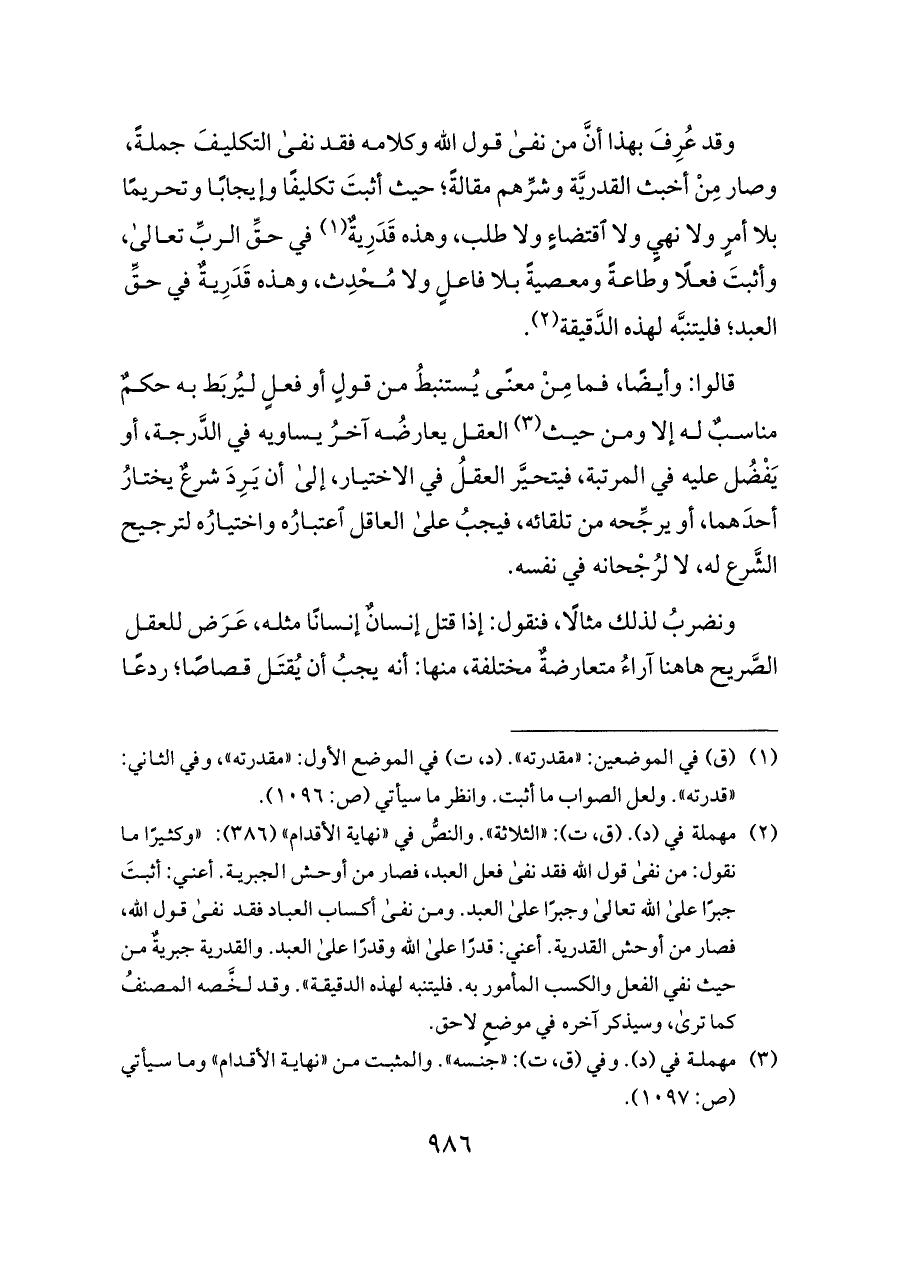 (¬١) (ق) في الموضعين: «مقدرته». (د، ت) في الموضع الأول: «مقدرته»، وفي الثاني: «قدرته». ولعل الصواب ما أثبت. وانظر ما سيأتي (ص: ١٠٩٦).