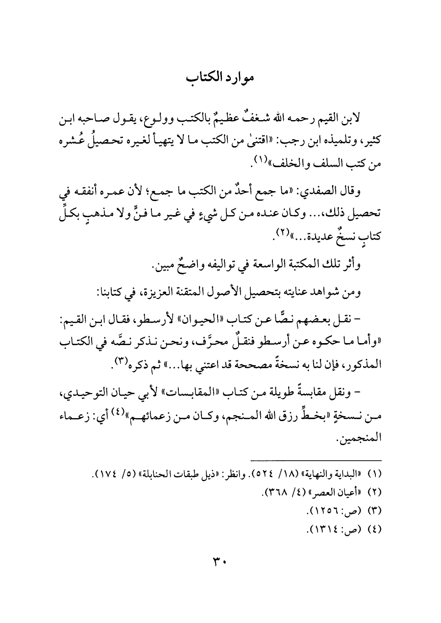 - نقل بعضهم نصًّا عن كتاب "الحيوان" لأرسطو، فقال ابن القيم: "وأما ما حكوه عن أرسطو فنقلٌ محرَّف، ونحن نذكر نصَّه في الكتاب المذكور، فإن لنا به نسخةً مصححة قد اعتني بها ... " ثم ذكره (¬٣).