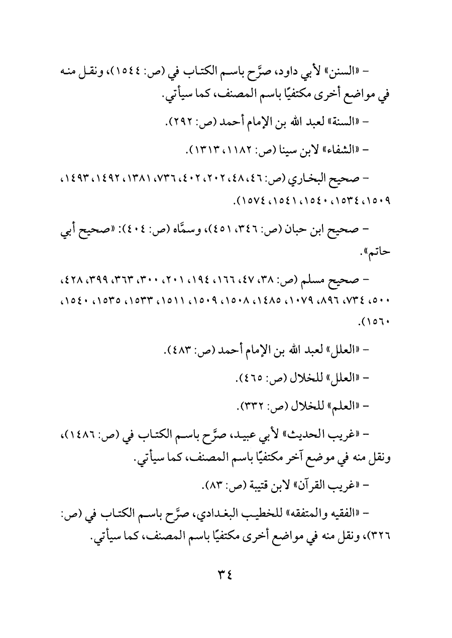 - "السنن" لأبي داود, صرَّح باسم الكتاب في (ص: ١٥٤٤) , ونقل منه في مواضع أخرى مكتفيًا باسم المصنف, كما سيأتي.