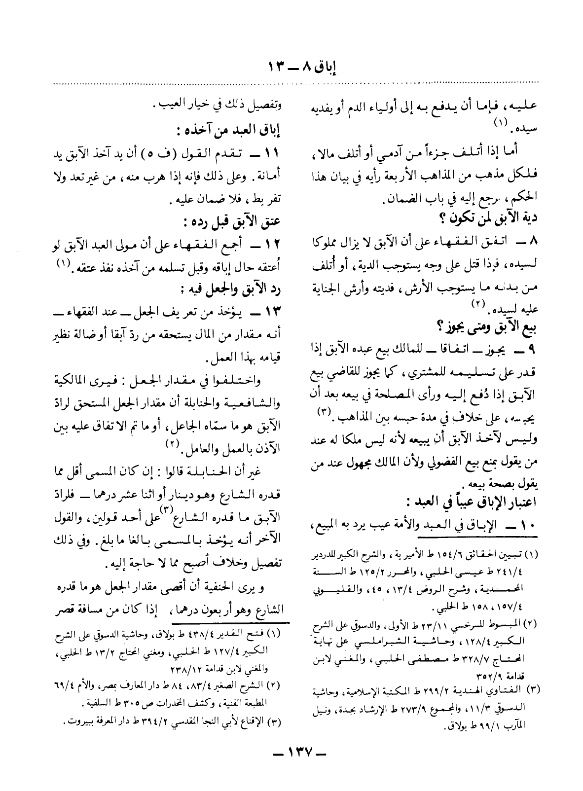(1) تبيين الحقائق 6 / 154 ط الأميرية، والشرح الكبير للدردير 4 / 241 ط عيسى الحلبي، والمحرر 2 / 125 ط السنة المحمدية، وشرح الروض 4 / 13، 45، والقليوبي 4 / 157، 158 ط الحلبي.