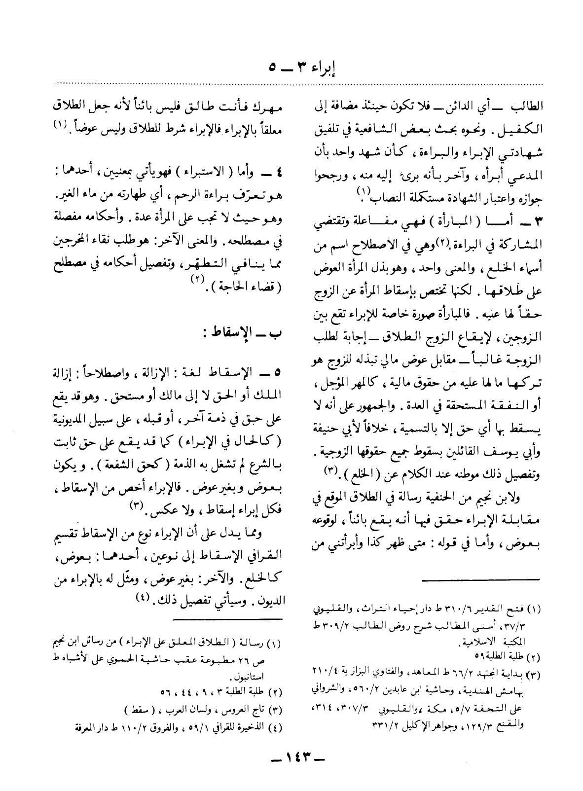 (1) رسالة (الطلاق المعلق على الإبراء) من رسائل ابن نجيم ص 26 مطبوعة عقب حاشية الحموي على الأشباه ط استانبول.