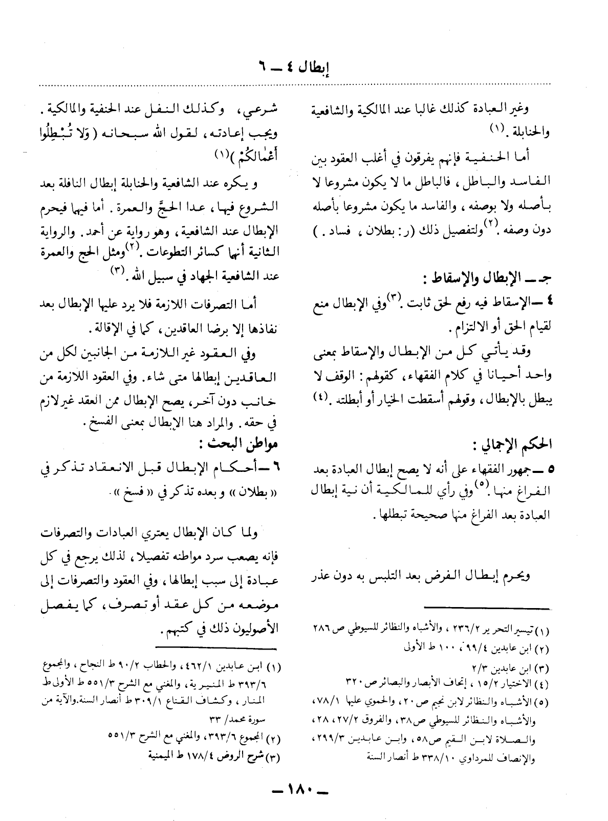 (1) ابن عابدين 1 / 462، والحطاب 2 / 90 ط النجاح، والمجموع 6 / 393 ط المنيرية، والمغني مع الشرح 3 / 551 ط الأولى ط المنار، وكشاف القناع 1 / 309 ط أنصار السنة. والآية من سورة محمد / 33