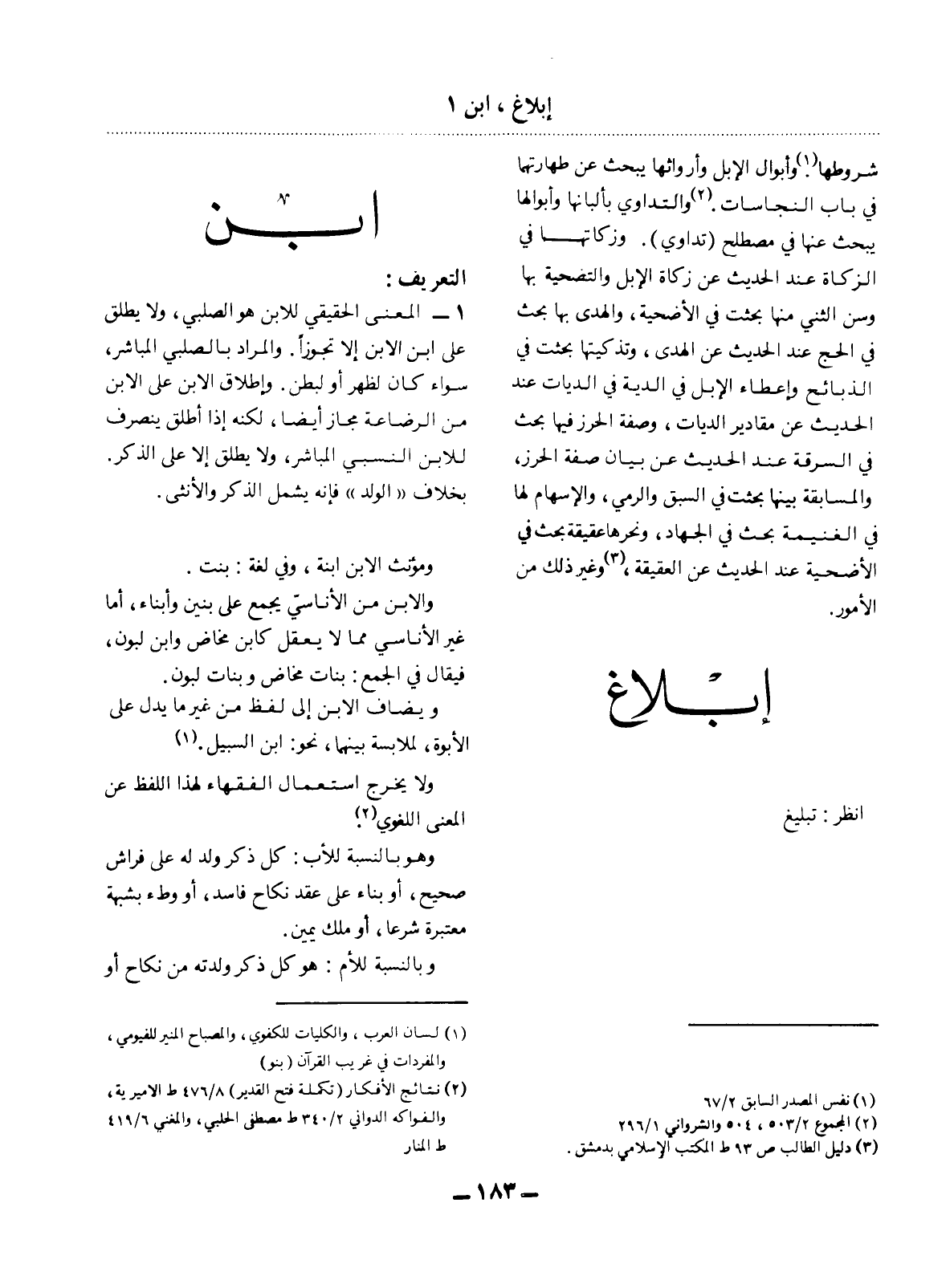 (1) لسان العرب، والكليات للكفوي، والمصباح المنير للفيومي، والمفردات في غريب القرآن (بنو)