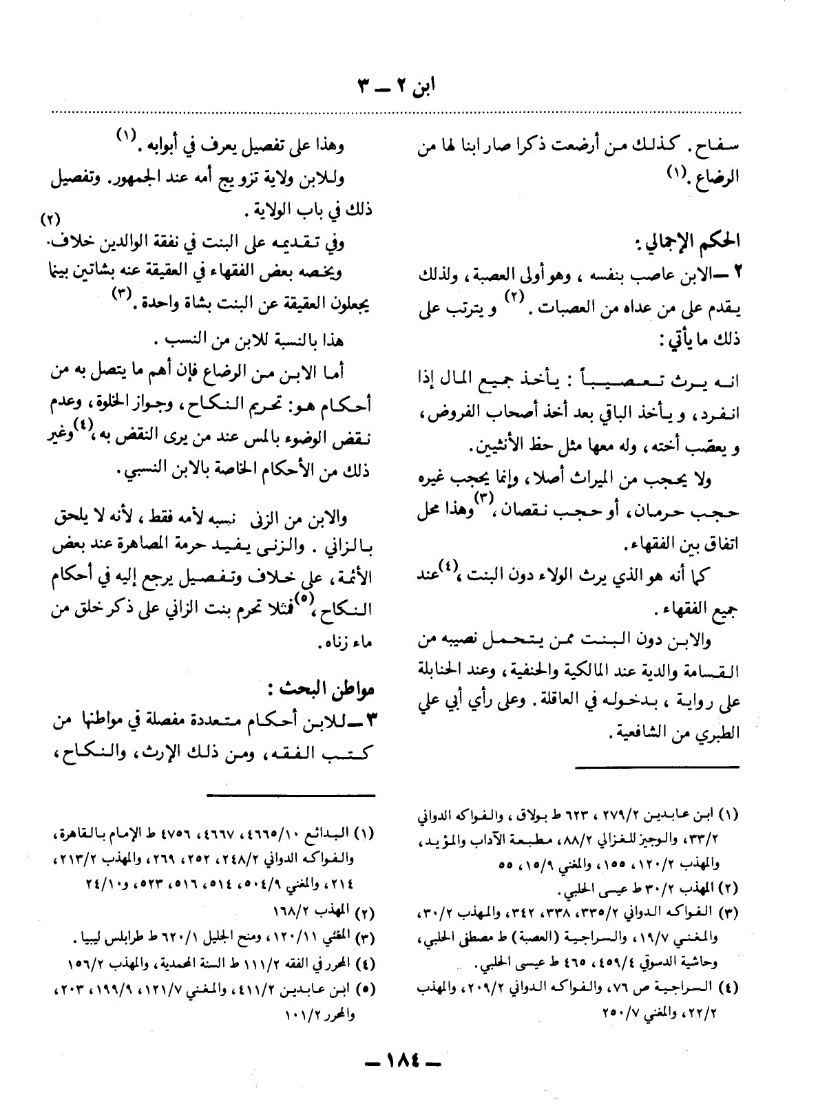 (3) الفواكه الدواني 2 / 335، 338، 342، والمهذب 2 / 30، والمغني 7 / 19، والسراجية (العصبة) ط مصطفى الحلبي، وحاشية الدسوقي 4 / 459، 465 ط عيسى الحلبي.